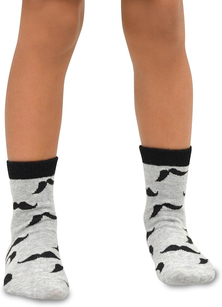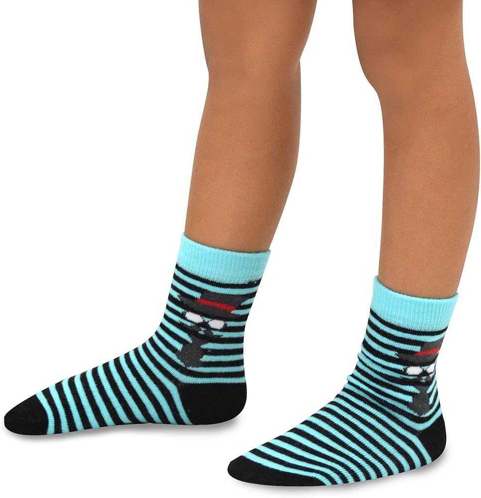 طقم جوارب قطنية مرحة عصرية للأولاد من TeeHee عبوة من 6 أزواج. ضمان الجودة: اتصل بنا في حالة وجود أي مشاكل قد تواجهها وسنبذل كل ما في وسعنا للمساعدة! حروف غير زلقة على الجزء السفلي من المقاسات حتى 24 شهرًا لمنع الانزلاق. إرشادات المقاس: 12-24 شهرًا، 3-5 سنوات، 6-8 سنوات، 9-10 سنوات. مستورد، يمكن غسله في الغسالة.