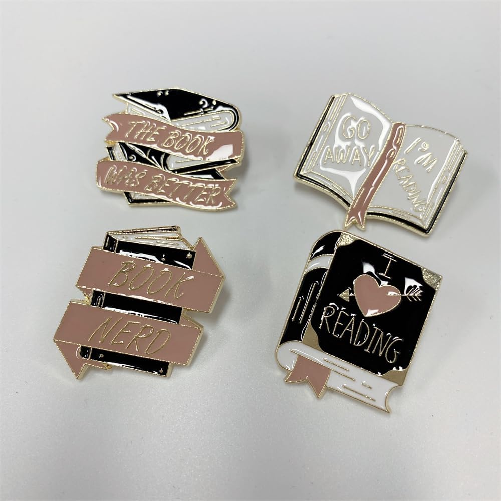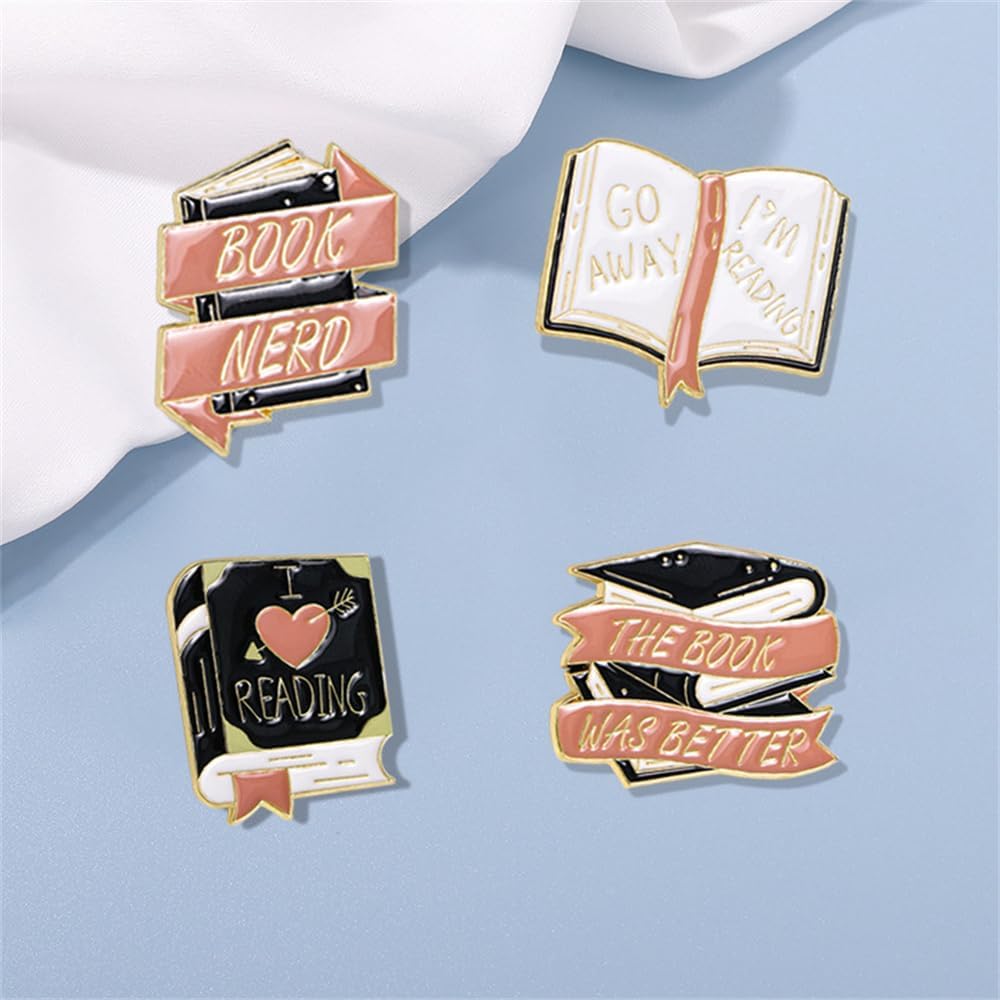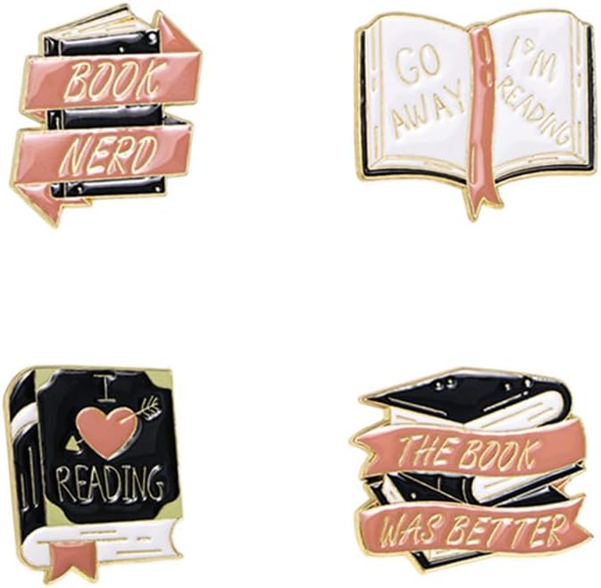 4 قطع من دبابيس الكتب لمحبي الكتب هدايا الكريسماس، كتاب حروف انجليزية مبتكرة، مجموعة دبابيس بروش لطيفة بتصميم كرتوني لطيف، دبابيس زينة لطية الصدر للنساء لشنط الظهر والملابس والشنط والجاكيتات