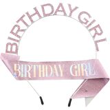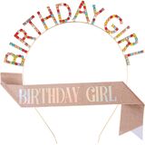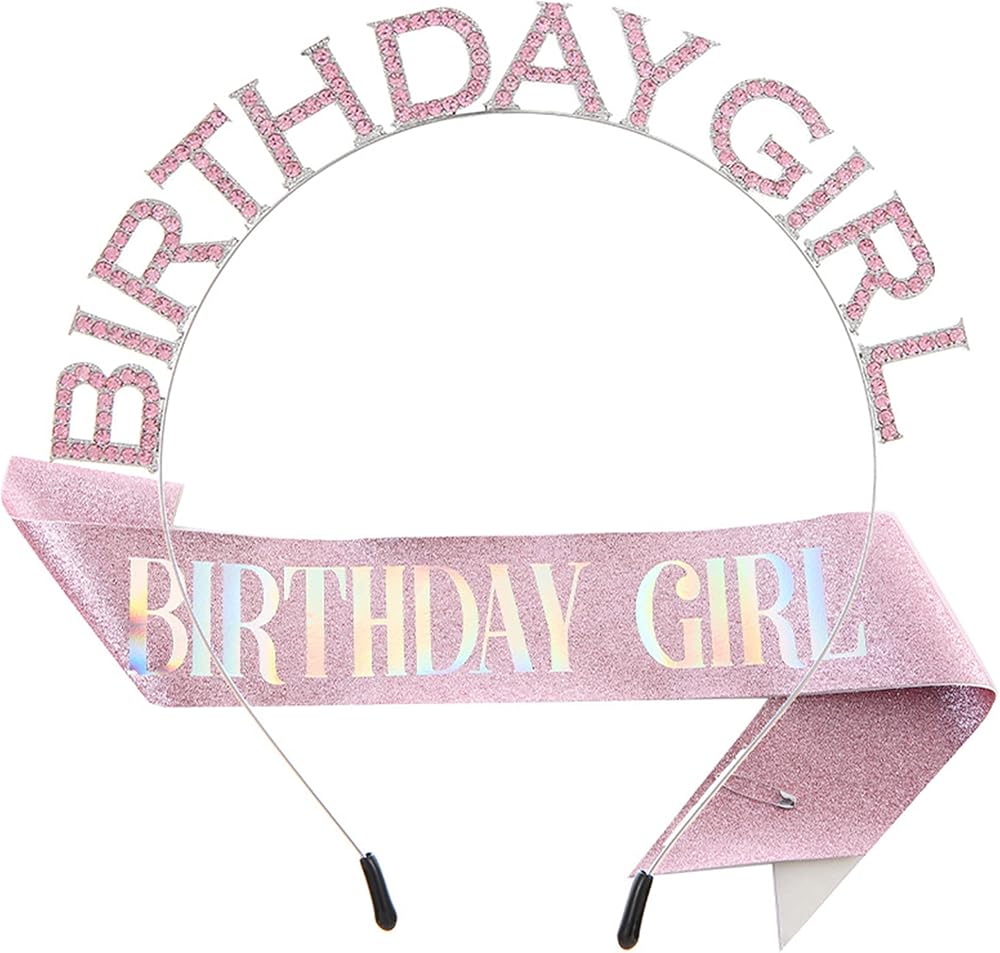 Made of flexible metal, 5.5 inch Length and adjustable width, birthday girl headband fit for most head size.