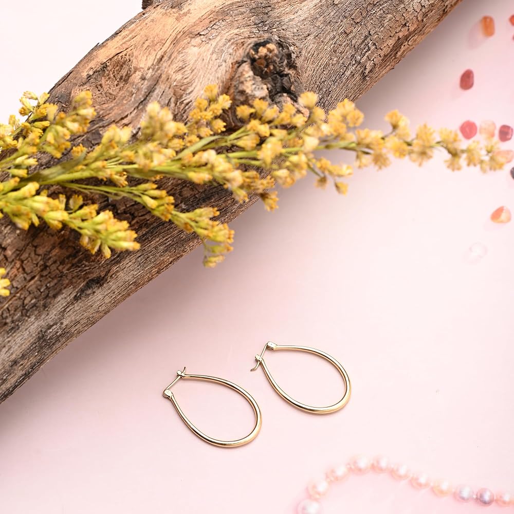 • آمنة وآمنة: مجهزة بآلية مشبك آمنة، توفر هذه الأقراط الدائرية البيضاوية راحة البال لأنها تبقى في مكانها بشكل مريح طوال يومك، مما يضمن لك الثقة في أسلوبك. هذه الأقراط الذهبية آمنة للارتداء، فهي خالية من الرصاص والكادميوم والنيكل.