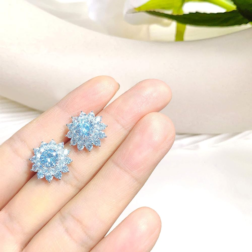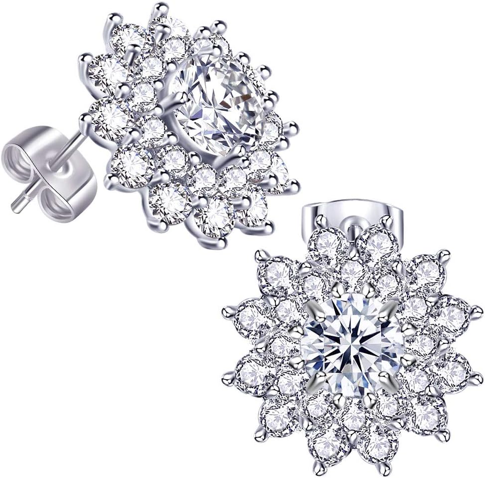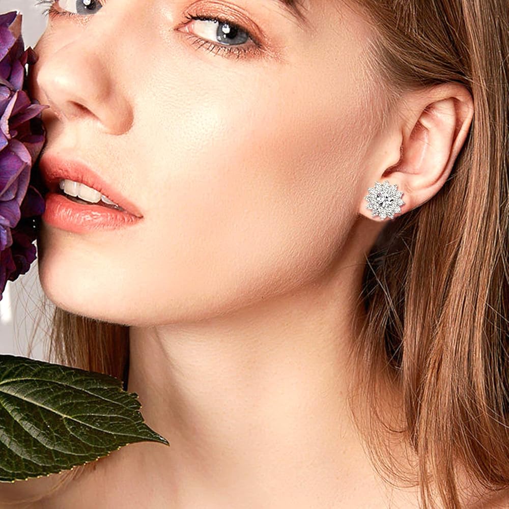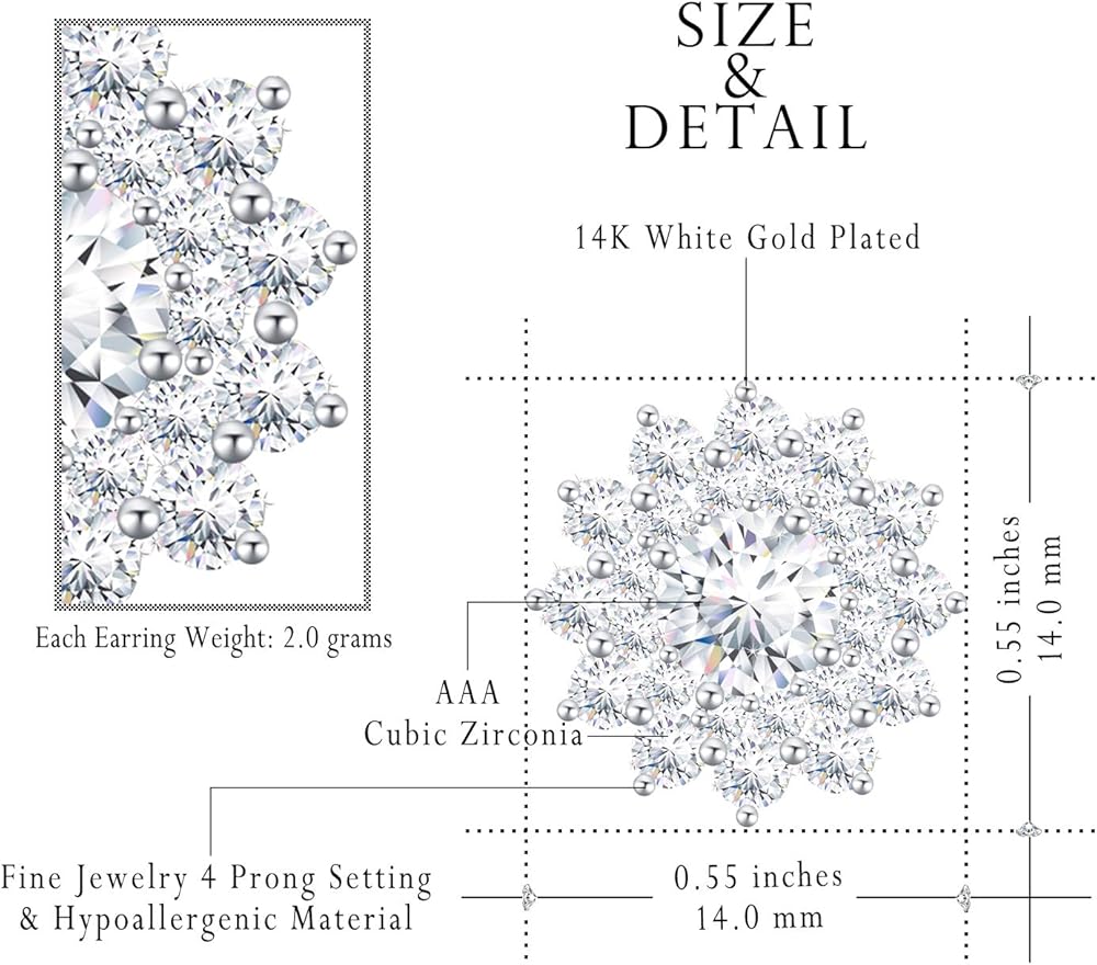 الصورة- مظهر رائع، أقراط مرصعة بحجر الزركون مطلي بالذهب الأبيض عيار 16 قيراط للنساء