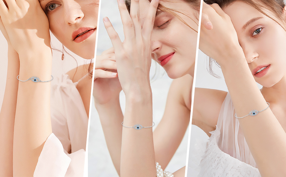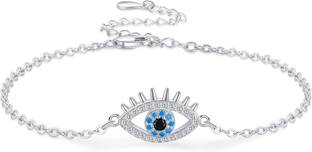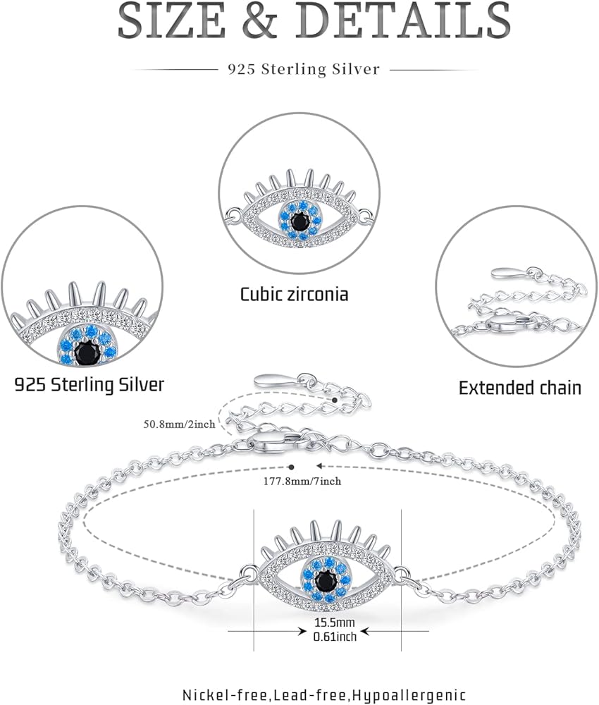 • فضة استرلينية حقيقية: مجوهرات العين الشريرة بالكامل مصنوعة من مادة الفضة الإسترلينية 925، والزركونيا المكعب المتلألئة AAAAA+ تجعلها أكثر أناقة ورقة. سوار خالٍ من النيكل والرصاص والكادميوم ومضاد للحساسية. مطلي بالذهب الأبيض، يضمن لمسة نهائية تدوم طويلاً، مثالية للمجوهرات اليومية.