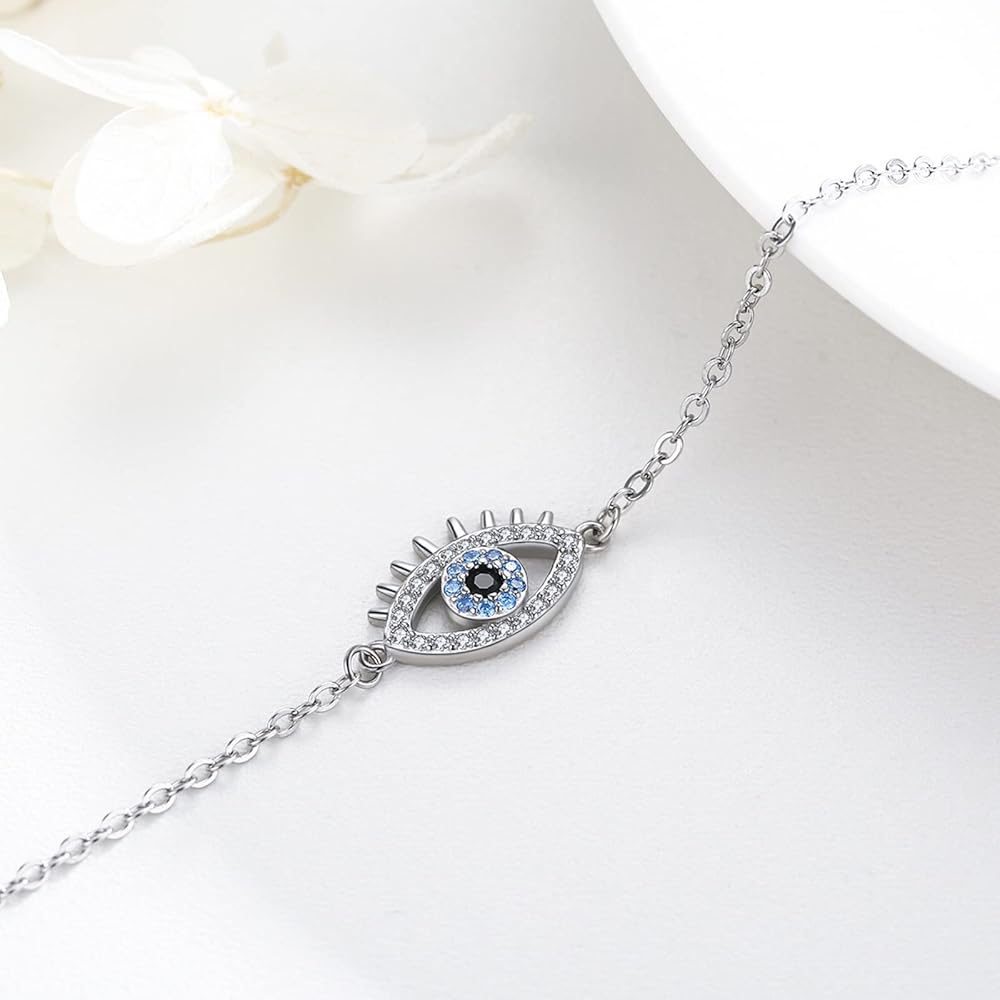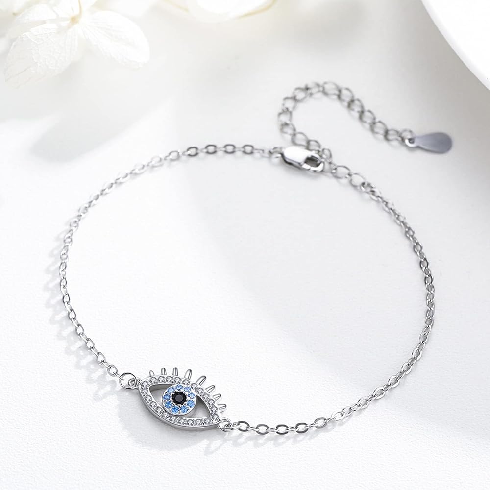 سوار العين الشريرة 925 الفضة الاسترليني الأزرق الشر العين سحر سوار الشر المجوهرات هدايا للنساء، الفضة الاسترليني ، زركونيا مكعب, فضة استرليني, زركونيا مكعب