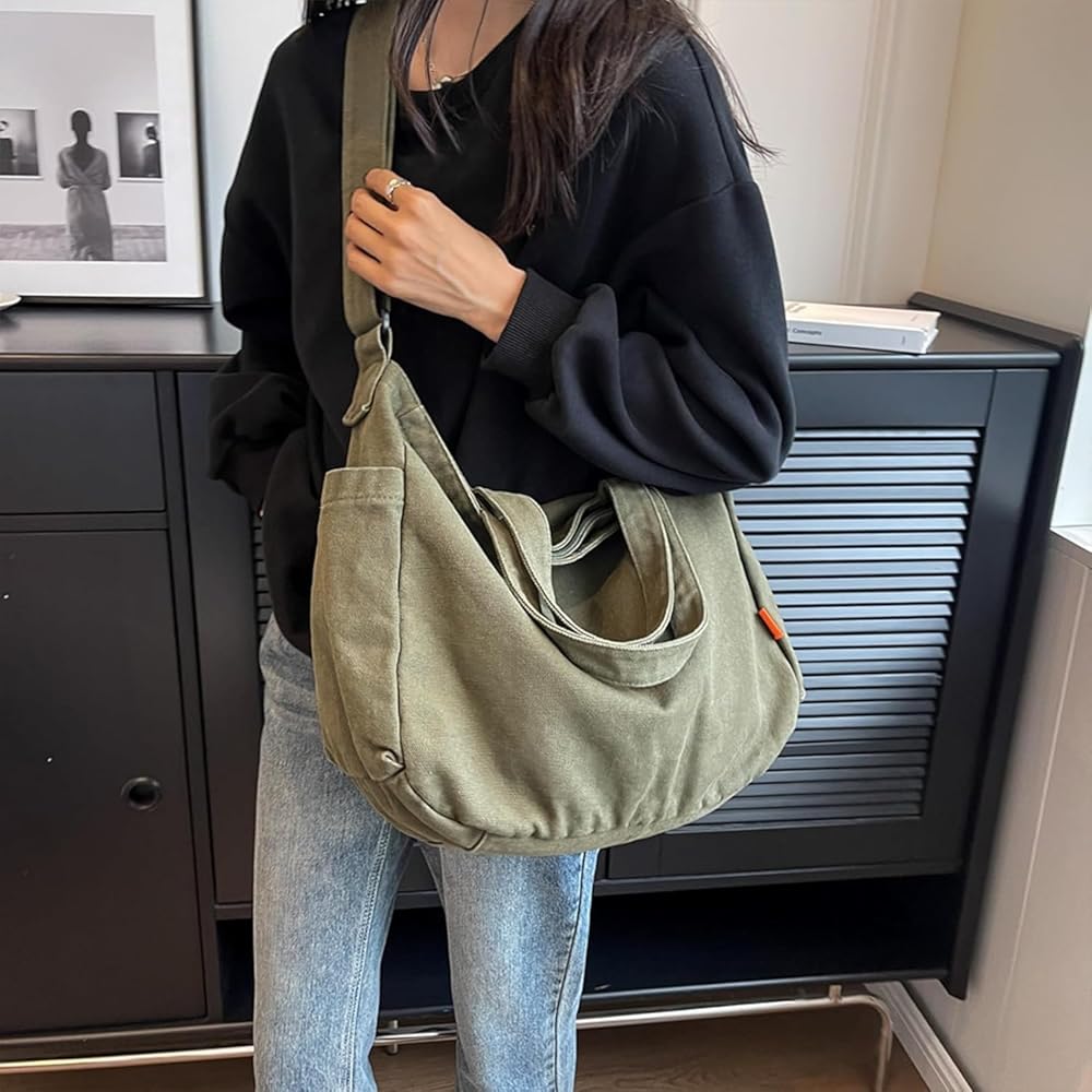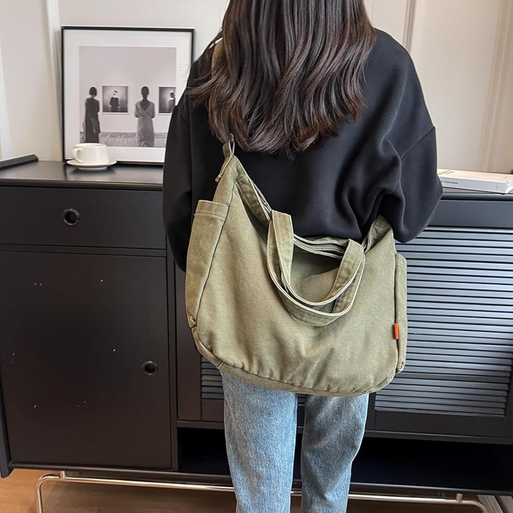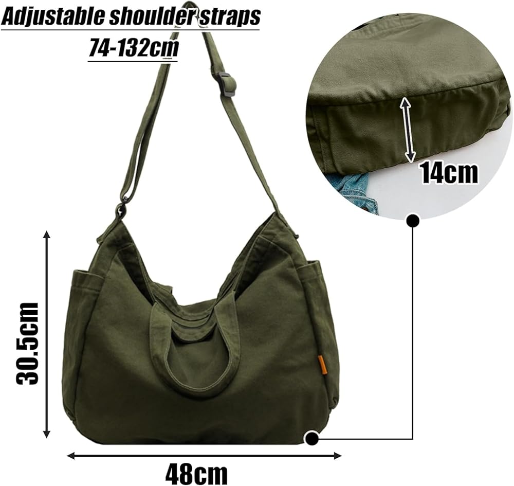High Quality Canvas Bag: Material: Canvas. This shoulder bag is made of canvas. It has wider and thicker adjustable shoulder strap, wear resistant and durable. The shoulder straps and the bottom of the tote bag are reinforced with strong load capacity and not easy to tear.
