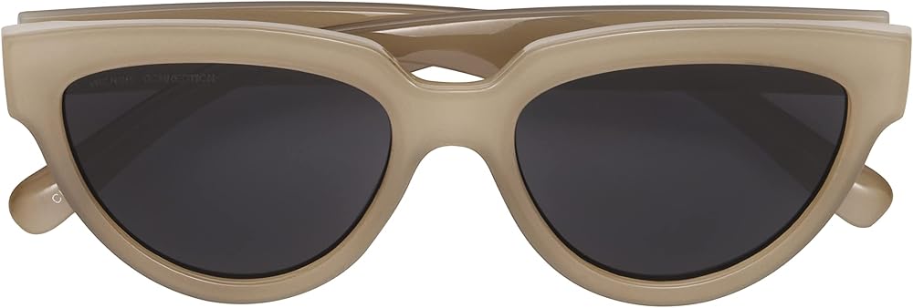 • Retro Sunglasses: Designed with a bold cat eye shape, these women's sunglasses feature frames made of translucent milky oatmeal plastic and smoke gray lenses that add emphasis to the classic color and shape of these vintage sunglasses
