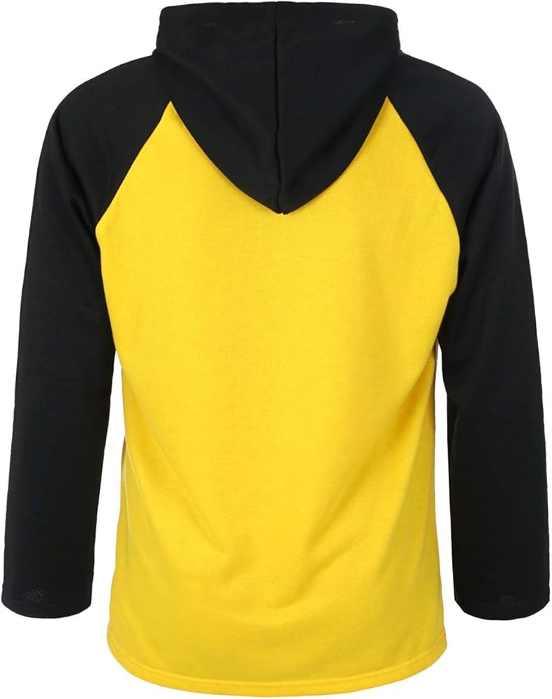 [Unique Design] - the costume design for Hoodies cosplay . It is consists of a Hoodie, the long sleeve shirt is yellow with a black hood and black sleeves.