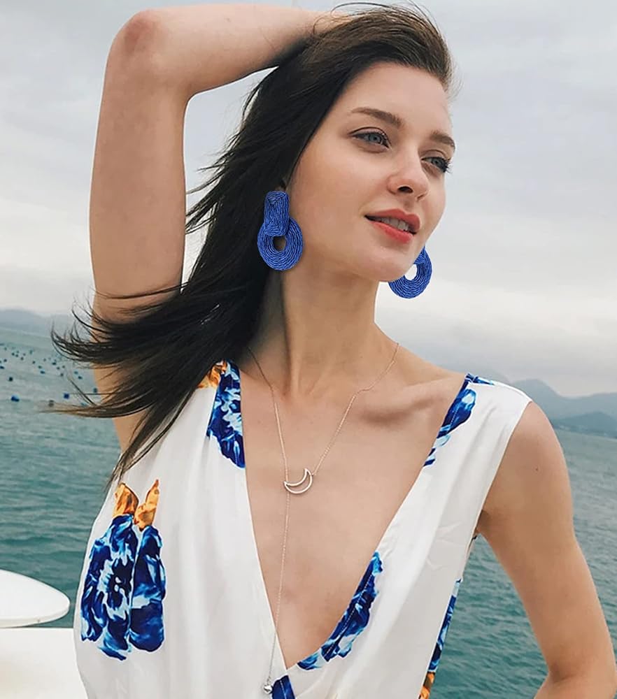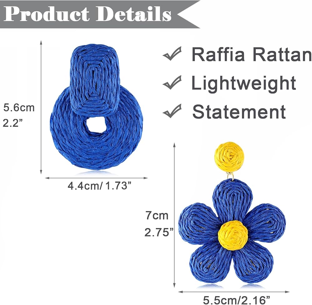 • 【أقراط صيفية عصرية مصنوعة يدويًا】مع قدوم الصيف، أنت بحاجة إلى زوج من الأقراط المنعشة التي تجعلك ترغب في ارتداء ملابس أكثر ألوانًا، وتصفيف مظهرك مع أقراط الروطان البوهيمي الخاصة بنا بشكل أكثر مرحًا. مناسبة للعديد من المناسبات مثل حفلات الشاطئ، والعطلات الصيفية، السفر، حفل الزفاف، الحفلات، المواعدة وتجمع الأصدقاء، إلخ.