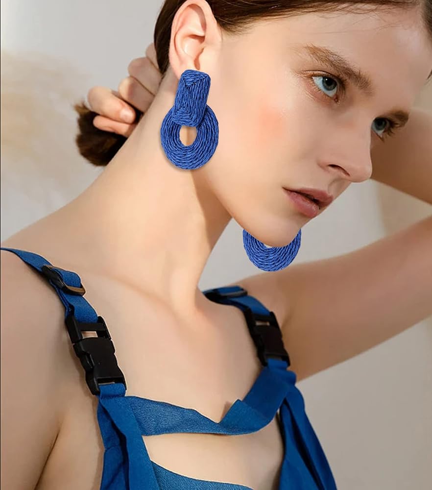 • 【أقراط شاطئ بوهو】أقراط الروطان خفيفة الوزن للغاية تتحدث عن الصيف! هذه الأقراط البوهيمية للسيدات يجب اقتناؤها مع ملابس الشاطئ والسراويل القصيرة والفساتين الاستوائية. أضف حقيبة يد من الروطان أو صنادل أو حزام لتنسيقها بشكل جميل. خفيف الوزن وبسيط وأنيق، هذا الزوج من الأقراط الصيفية المجدول مصنوع من الرافية الطبيعية مع نسيج منسوج يدويًا من قبل حرفيين، مصنوع يدويًا وطبيعي وفريد ​​وأنيق. الحجم: حوالي 2.75 × 2.16 بوصة.