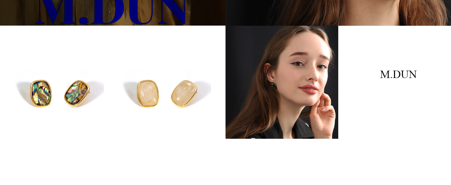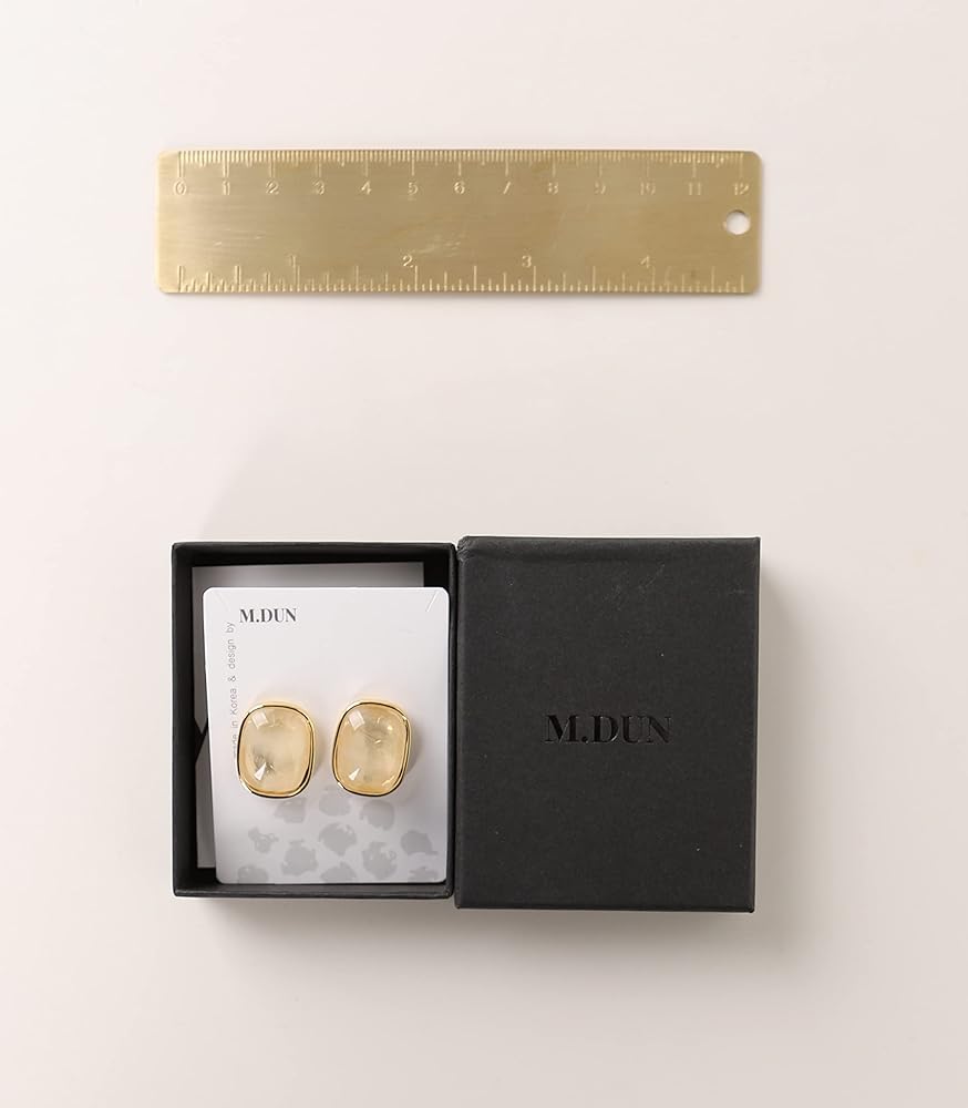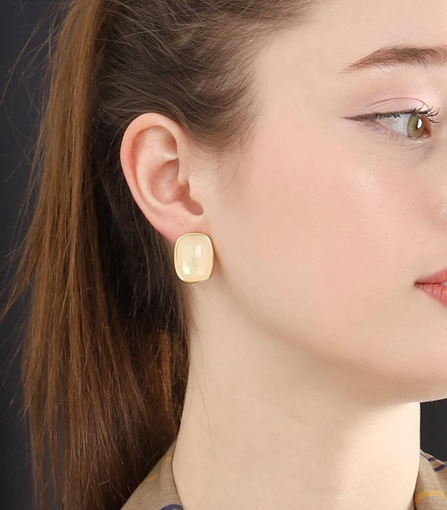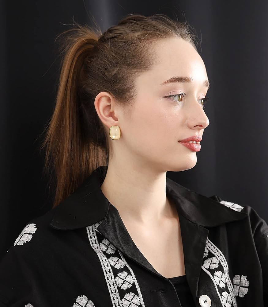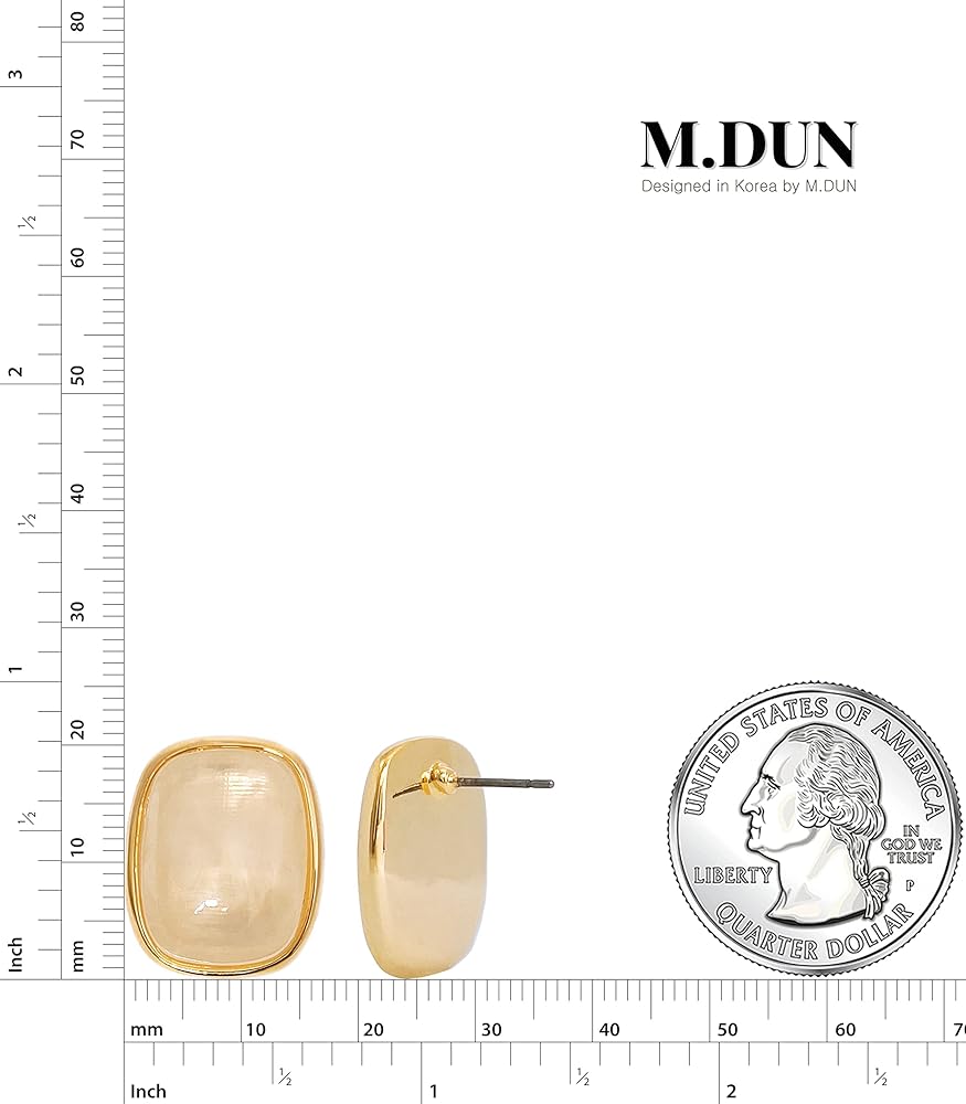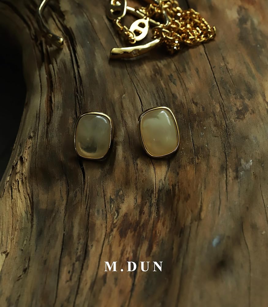 M.DUN- حلق بحواف مستديرة مستطيلة الشكل. أذن البحر العنبر الفيروزي تصميم حجر الراتنج / إطار مطلي بالذهب الحقيقي عيار 18 قيراط، هدية رائعة لا تسبب الحساسية للنساء والفتيات (العاج)