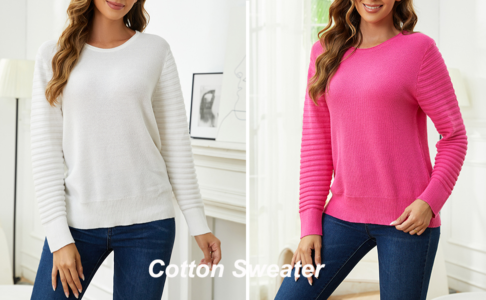 Women's pullover sweaters material: Womens pullover sweaters is made of comfortable cotton fabric, skin-friendly fabric which is breathable, soft, light weight, loose fitted. Cotton sweaters for women is regular thickness fabric keep your cozy in fall, winter and spring