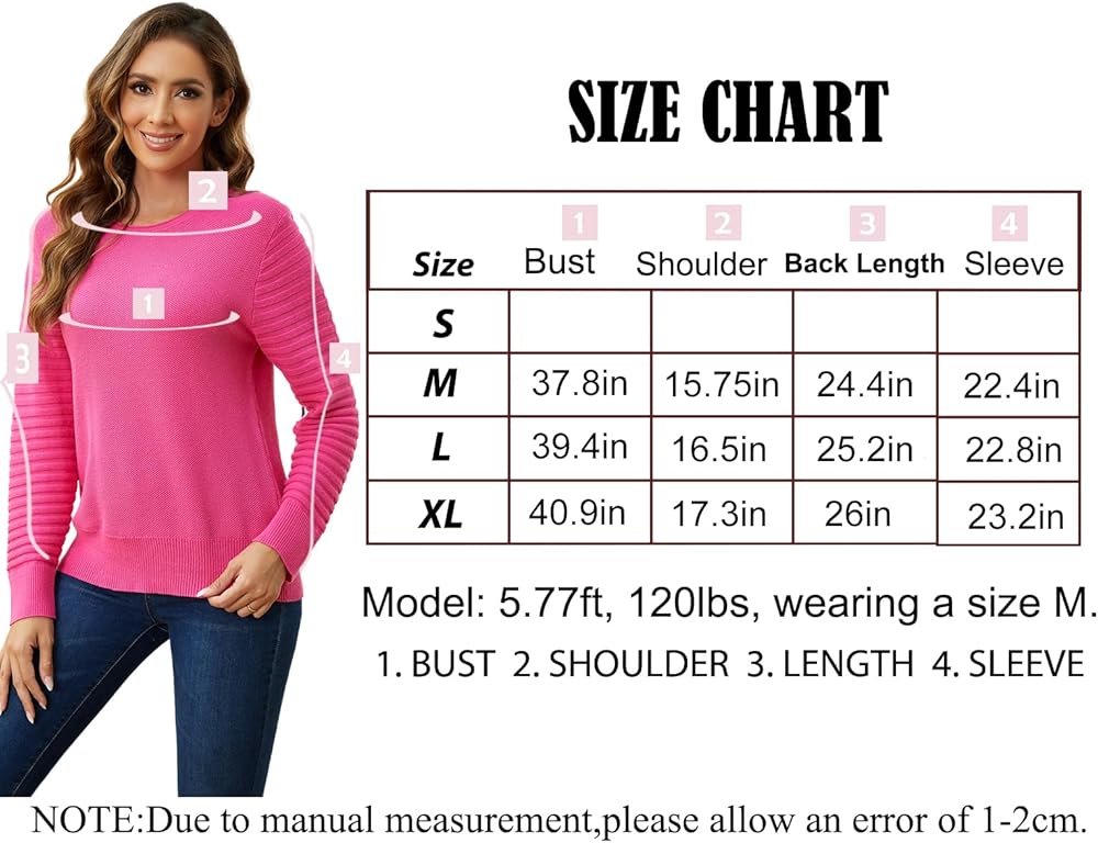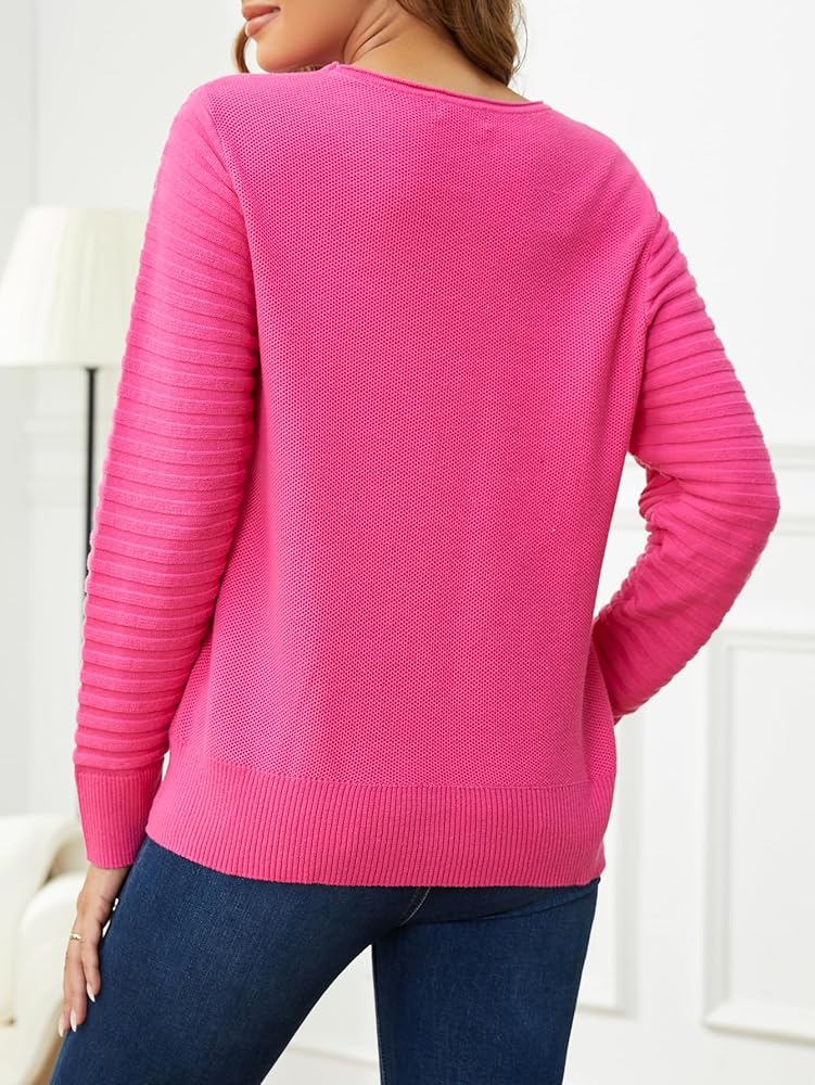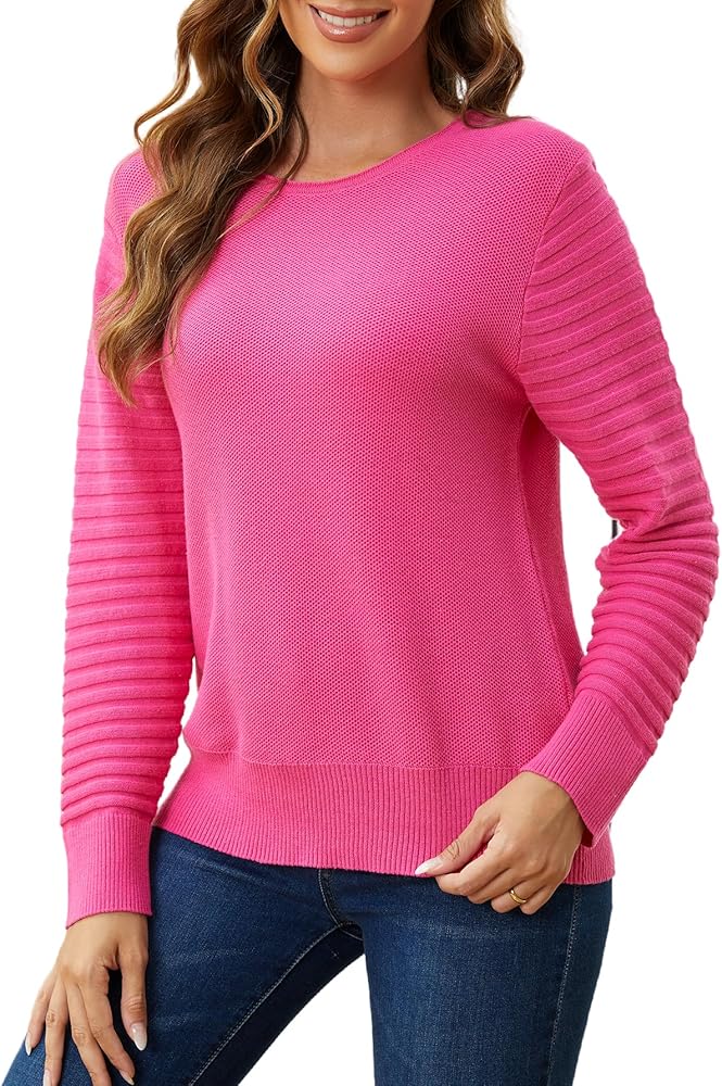 Hot pink sweater feature: Our hot pink sweater for women features casual style, light weight, long sleeved,classic crewneck, striped long sleeve, waffle knit design, ribbed hem and cuff, stretchy, delicate stitching,stylish and warm. Waffle knit sweater is in line with the current trendy, makes you look more flattering