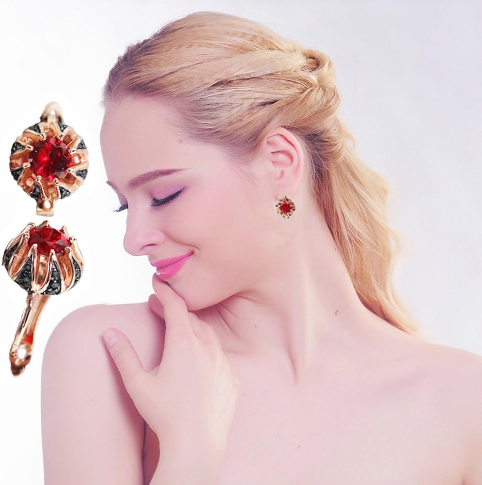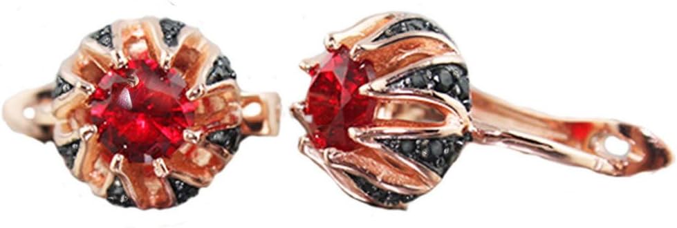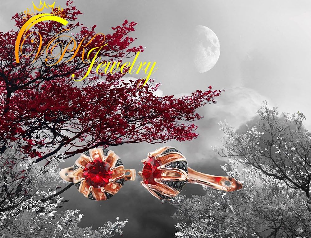 Real 925 Sterling Silver Rose Gold Plated Earrings Ruby and black CZ or White and Black CZ