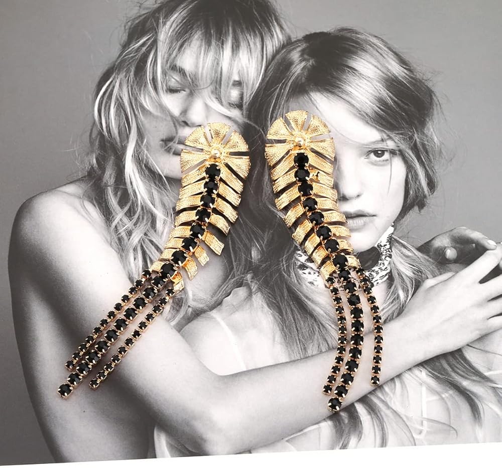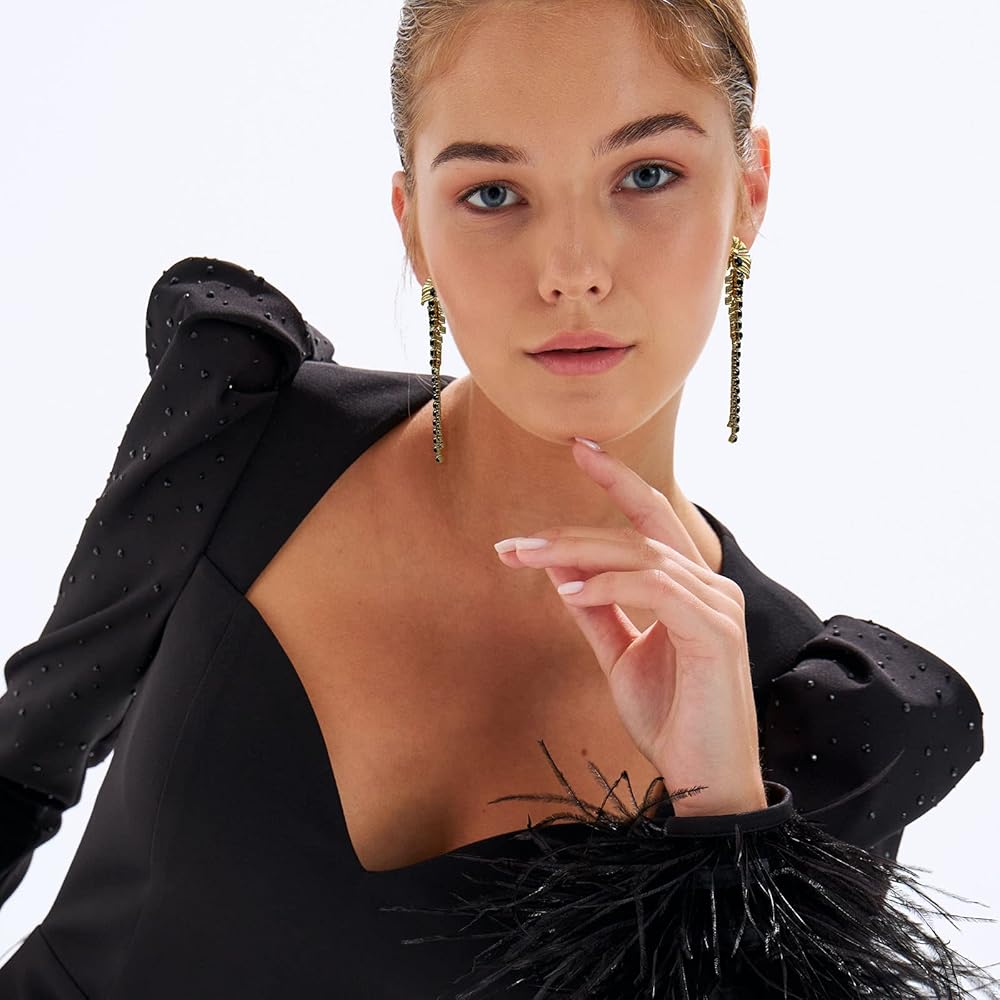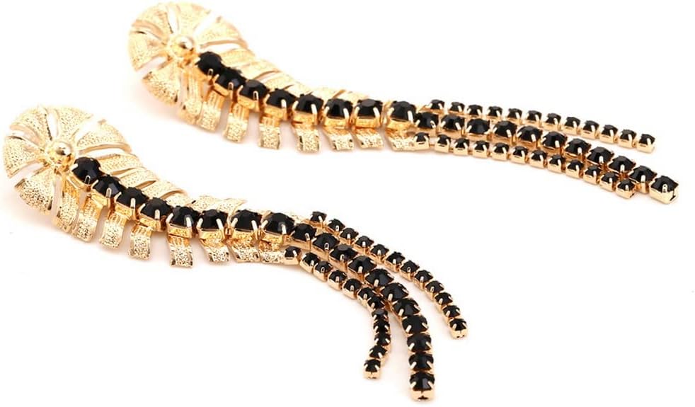 تصميم فريد من نوعه لأقراط شرابة على شكل أوراق شجر، مزيج أسود وذهبي من الشكل الأنيق والساحر، خفيفة الوزن للغاية، سهلة الارتداء والخلع. تم تصميم شرابات الزركونيا السوداء الناعمة بعناية لتكون مرنة ولها وزن لتبقى ثابتة دون إفساد شعرك. الأوراق على شكل ذهبي مع جذور مميزة، تشبه عروق الأوراق الرقيقة.