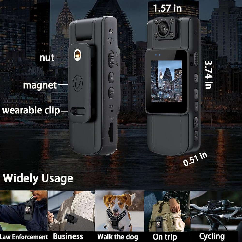 • كاميرا متعددة الوظائف يمكن ارتداؤها على الجسم: هناك 3 طرق لتناسب كاميرا الجيب: مشبك يمكن ارتداؤه، وجوز، ومغناطيس. مع أحدث شريحة مطورة ووظيفة مضادة للاهتزاز، لا تستطيع كاميرا الجسم هذه تسجيل الصوت والفيديو فحسب، بل تعمل أيضًا ككاميرا لجسم الشرطة وكاميرا لوحة القيادة، ويمكن استخدامها لإنفاذ القانون، وسجل المرور، وركوب الدراجات، والتسليم خارج المنزل والرياضة وغيرها، والتي يمكن الاعتماد عليها لإظهار أدلة قوية