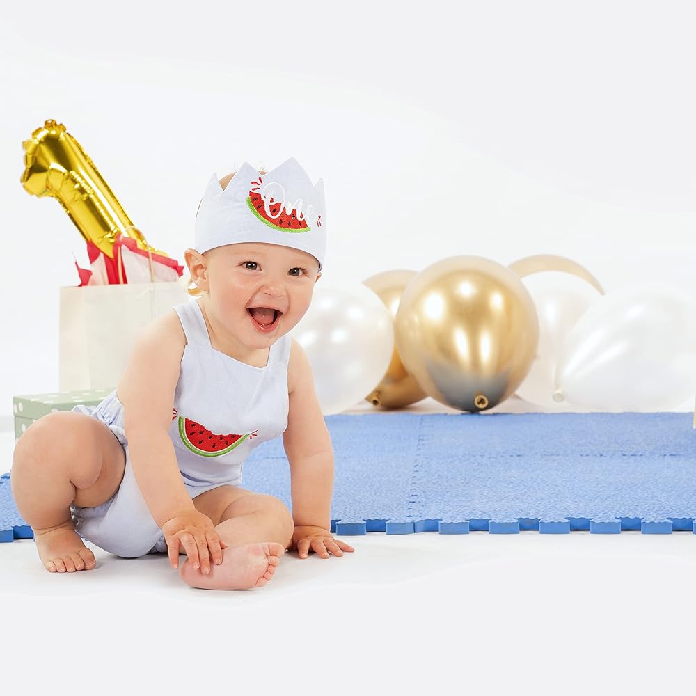 PERFECT FOR BIRTHDAY PARTY: Let your little prince shine on his first birthday with his marvelous romper and little 'one' crown; a special occasion to create memories and take photos.