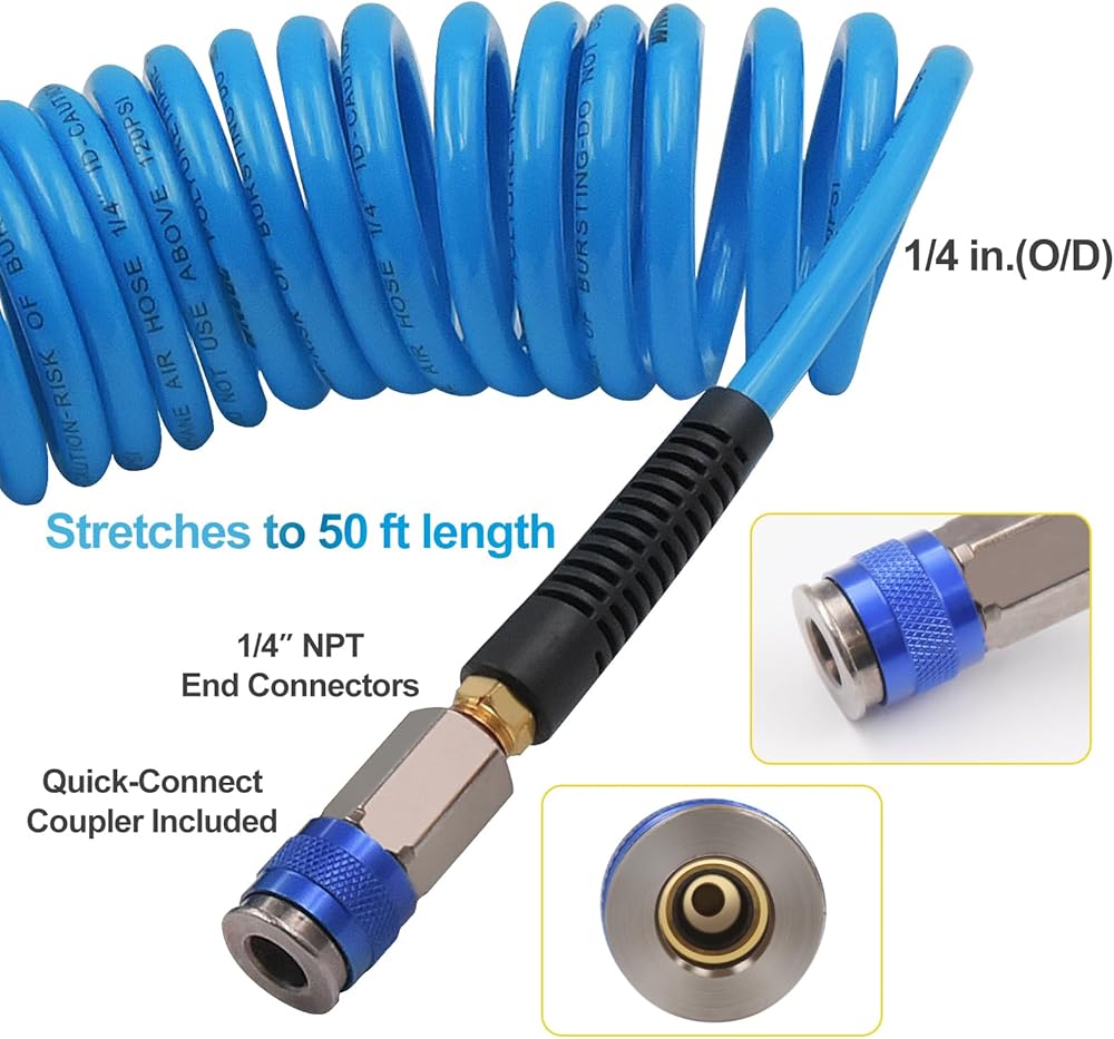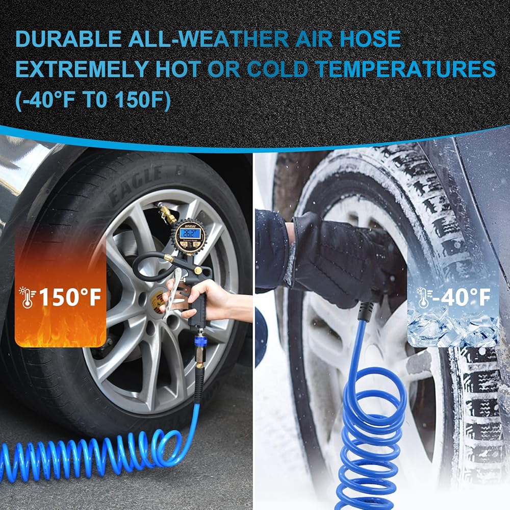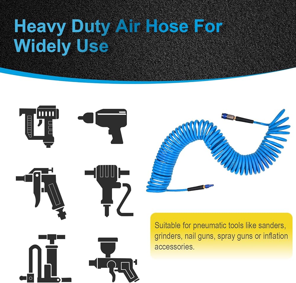 • ✔️مرنة وخفيفة الوزن --- أقوى وأكثر مرونة من خراطيم الهواء البلاستيكية والبلاستيكية، وأكثر خفة الوزن وقابلة للحمل من خراطيم الهواء المطاطية والهجينة. يمكن أن يصل طول خرطوم ضاغط الهواء الخاص بنا إلى 25 قدمًا (كحد أقصى). لا تسرب.