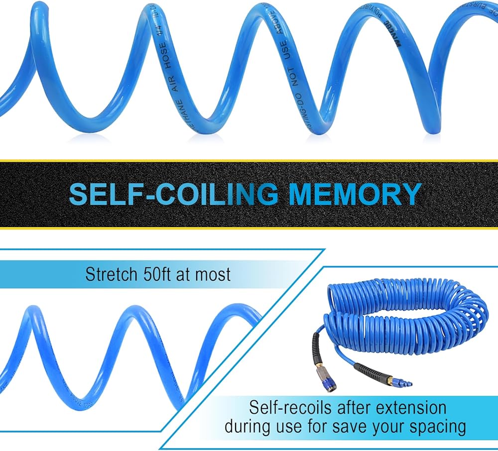 • ✔️مواد ممتازة --- خرطوم الهواء الارتداد WNCGC مصنوع من البولي يوريثين (PU) الذي يكون تشطيبه الناعم أقل عرضة لخدش الأسطح. يتميز بأنه مضاد للتشابك، والتآكل، والزيت، ومقاوم للشحوم، وأكثر متانة وخفيف الوزن.
