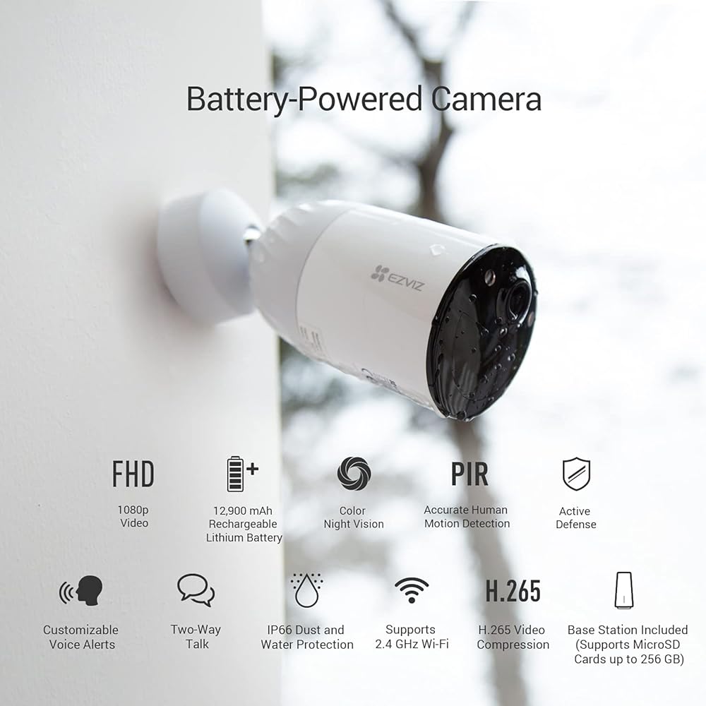 كاميرات EZVIZ الشمسية الأمنية اللاسلكية في الهواء الطلق، كاميرا لأمن المنزل في الخارج مع رؤية ليلية ملونة، صوت ثنائي الاتجاه، كشف الحركة بالذكاء الاصطناعي والتنبيه، كاميرا مراقبة بالضوء الفيضان، مقاومة للماء، 256 جيجابايت