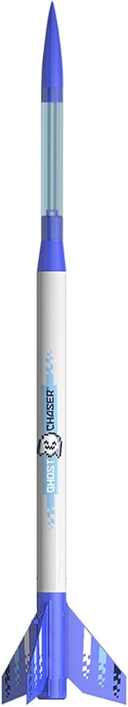 • The translucent blue and silvery-white Estes 7300 Ghost Chaser Rocket Kit features a transparent cargo section for lofting your favorite small payloads to altitude. Reach up to 1100 ft. 335 m. on an Estes C6-5 engine. Start flying quickly with the no-glue-snap-together construction and cool custom sick-on decals.