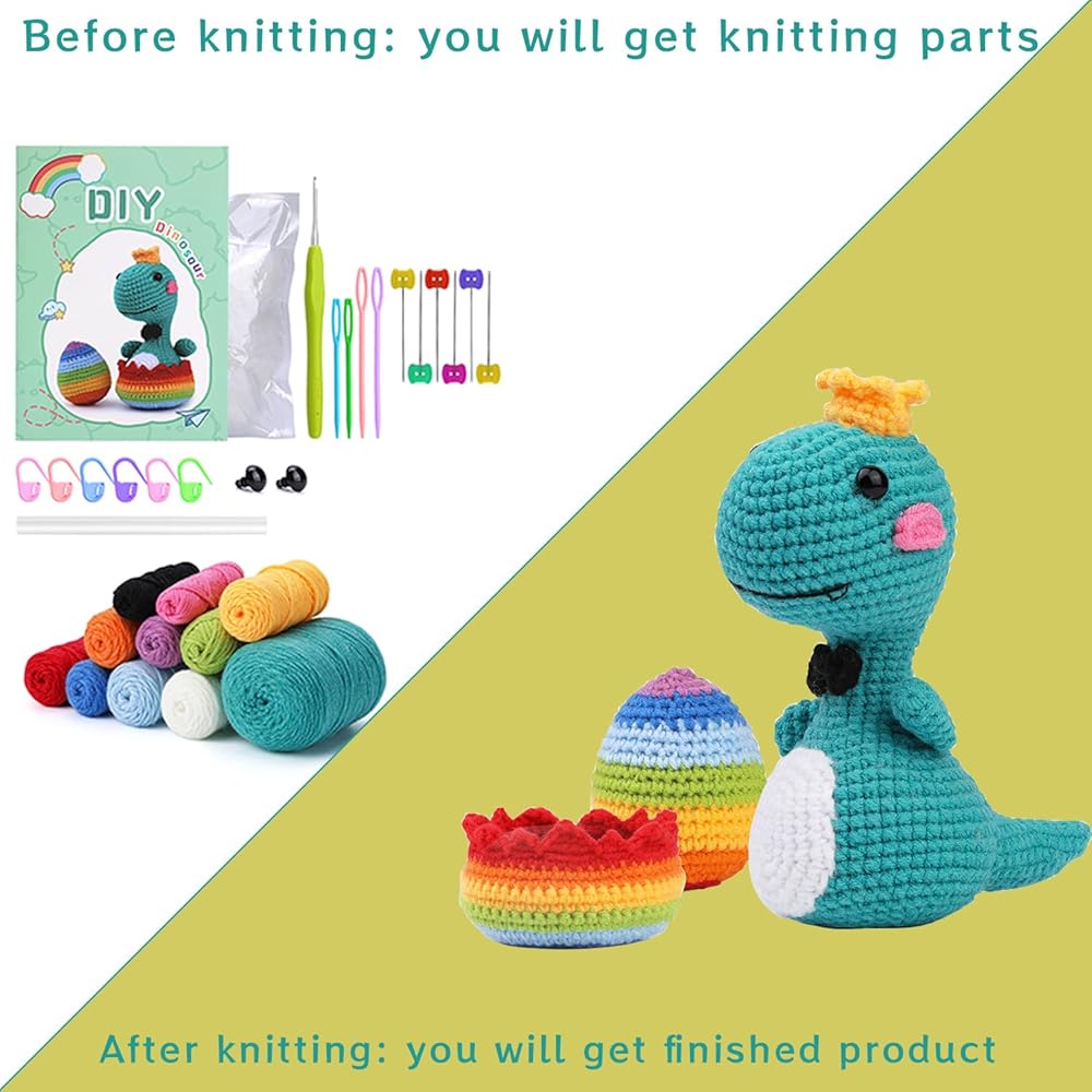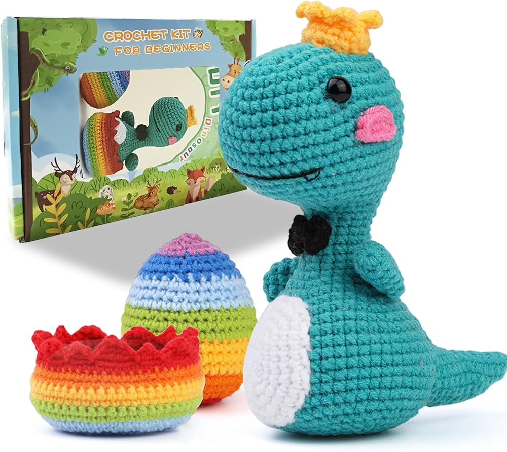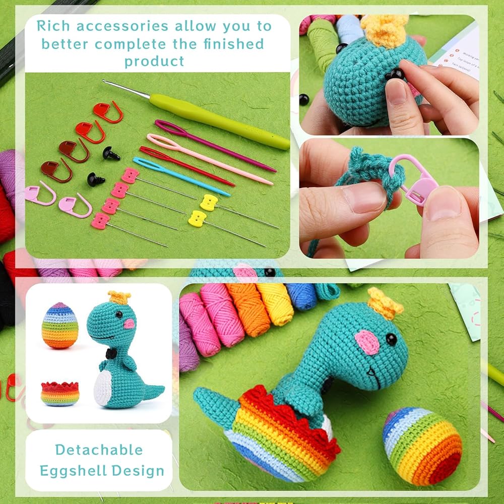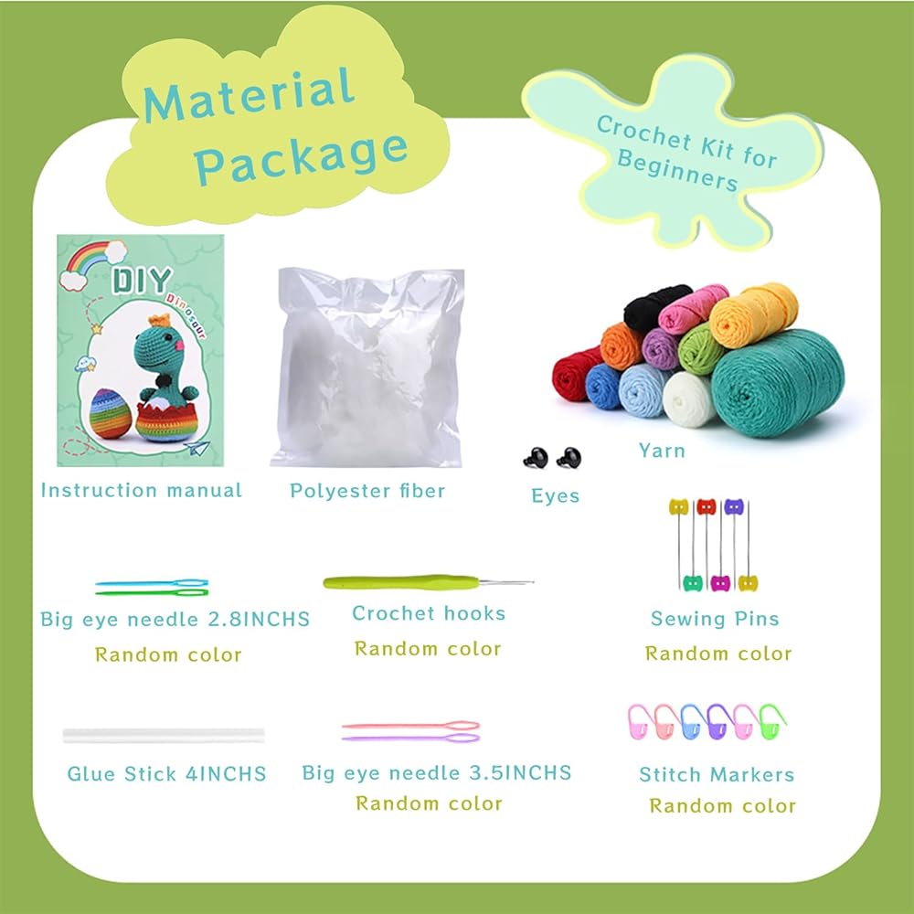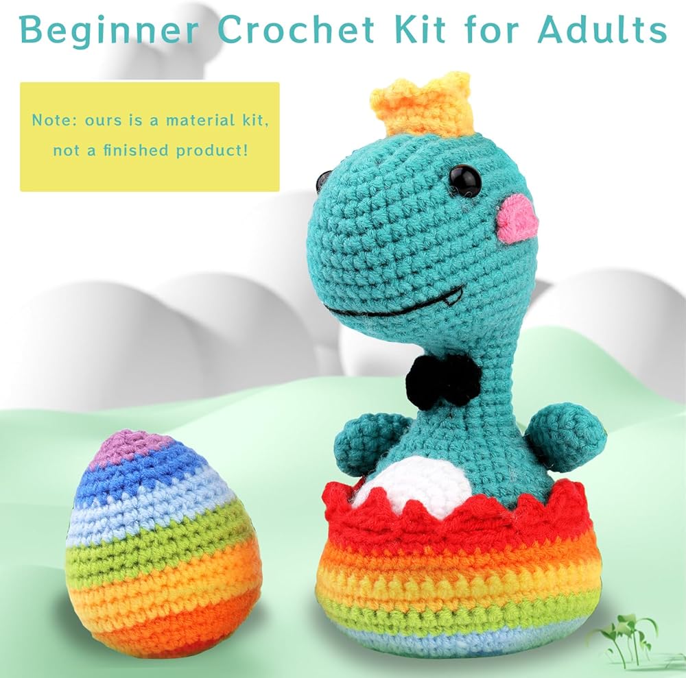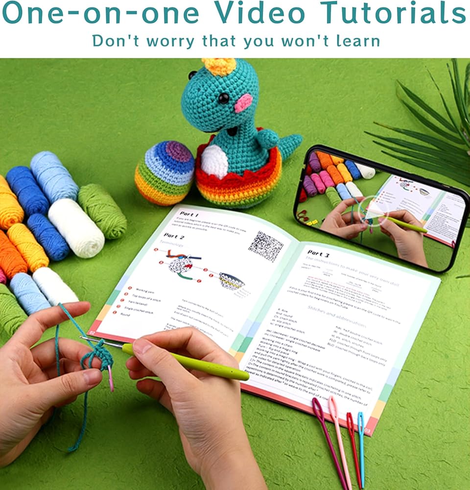 مجموعة أدوات الكروشيه للمبتدئين من FBesteam - مجموعة أدوات الحياكة للمبتدئين للبالغين والأطفال بعمر 12 عامًا فما فوق، مجموعة المبتدئين من الكروشيه تعلم الحياكة مع تعليمات خطوة بخطوة، ودروس فيديو تعليمية يمكنك صنعها بنفسك كهدية لحرف الديناصورات