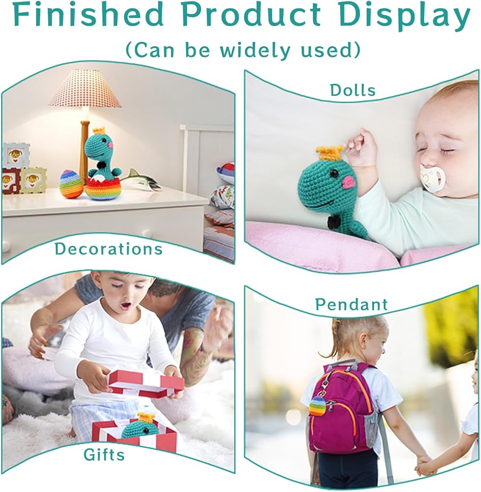 مجموعات الكروشيه للمبتدئين - تتضمن مجموعات الكروشيه لدينا جميع الأدوات اللازمة لاحتياجات المبتدئين، كاملة مع الخيوط والحشو والإبر والعينين والأزرار وخطافات الكروشيه وزخارف الديناصورات ودليل المبتدئين.