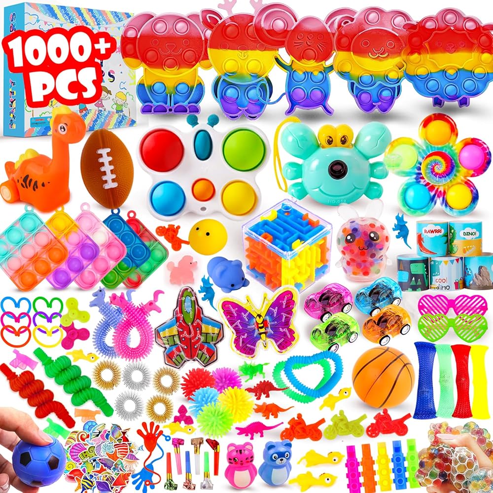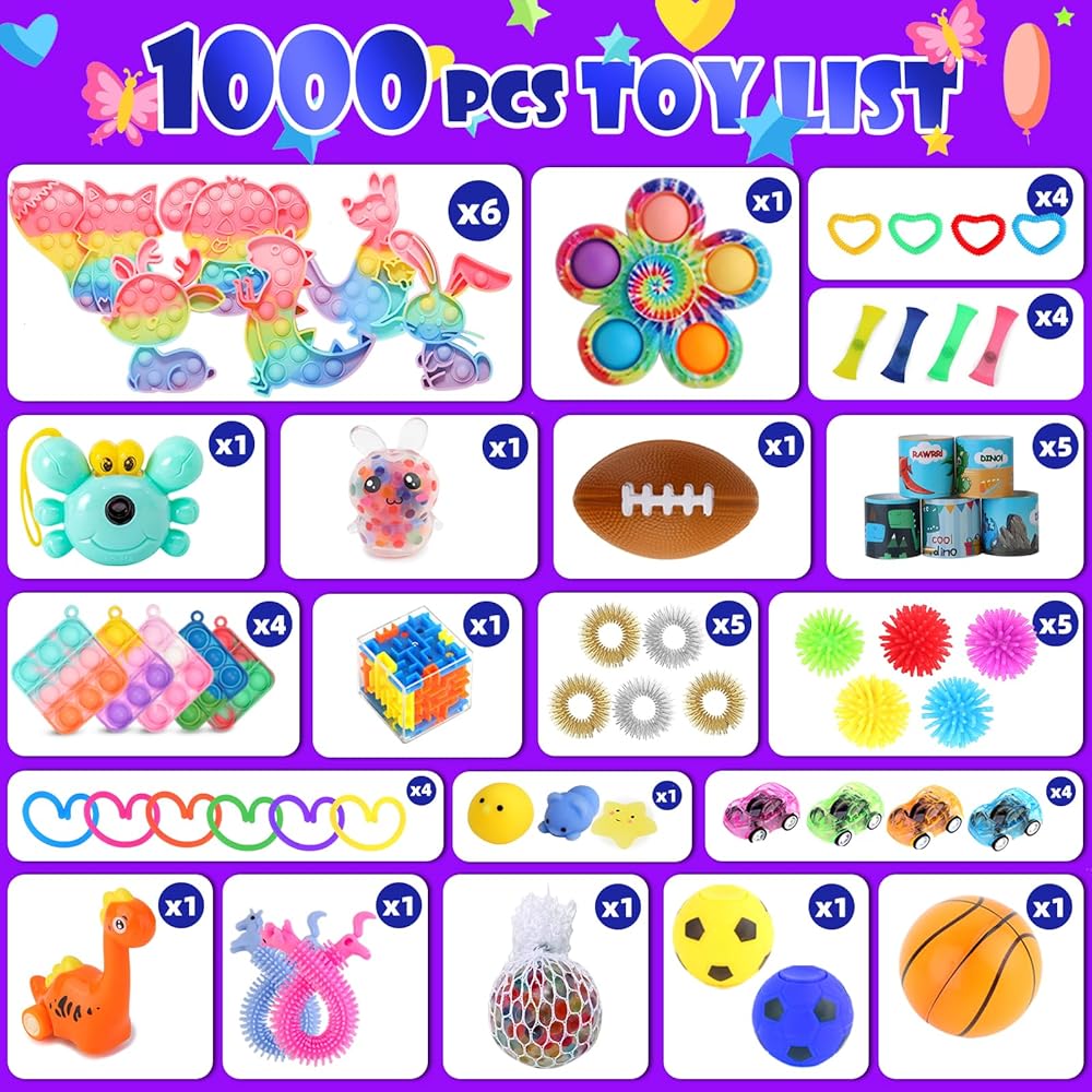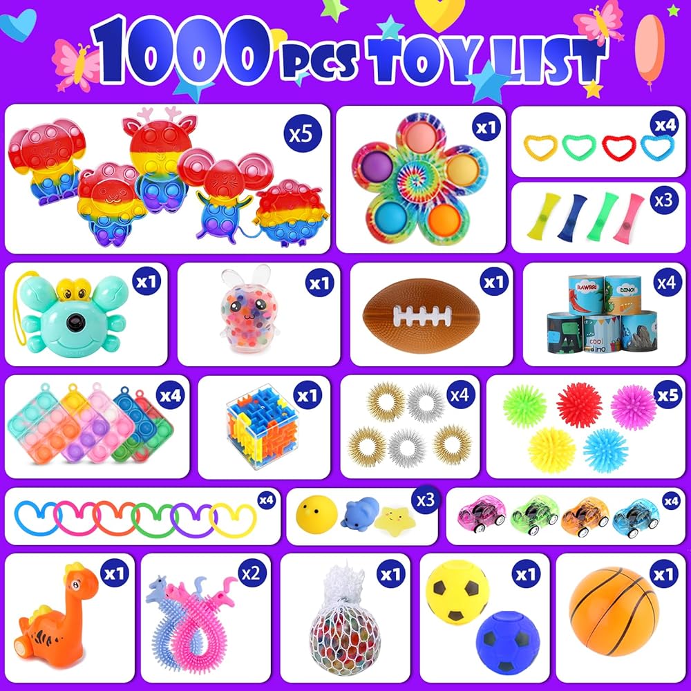 مجموعة ألعاب فيدجيت مكونة من 1000 قطعة، هدايا الحفلات الكبيرة للأطفال، حشوات للجوارب، صندوق الكنز، حفلة عيد الميلاد، جوائز الكرنفال في الفصل الدراسي، حشوات البيناتا، حشوات حقائب الهدايا، تخفيف التوتر، لعبة حسية