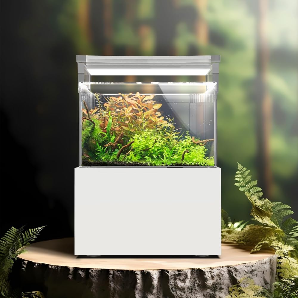 Versatile Design: Crafted from high-transparency acrylic material, our integrated design combines aesthetics with durability. This desktop aquarium is perfect for both fish and plant enthusiasts, offering an exquisite ecological landscape for your home or office.
