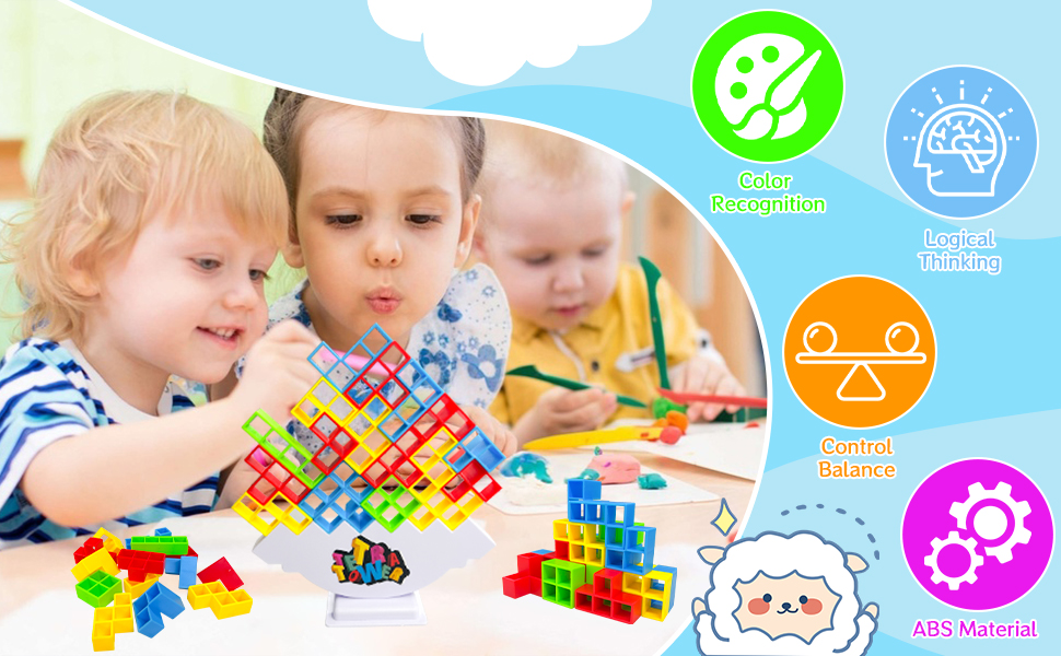 🟧【Foster Creativity】This Stacking Team Building Blocks toy offers children a creative outlet where they can experiment with various stacking techniques to create unique structures and artworks. You can challenge yourself individually, try to stack more tetra block while keeping balance or play it with friends and families. Also you can use your imagination to form different patterens with the colorful blocks, such as umbrallas, flowers, fish, etc.
