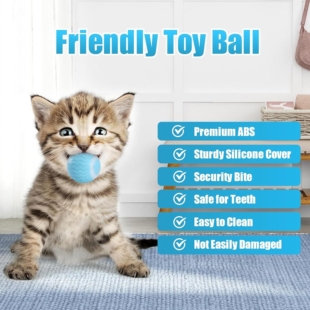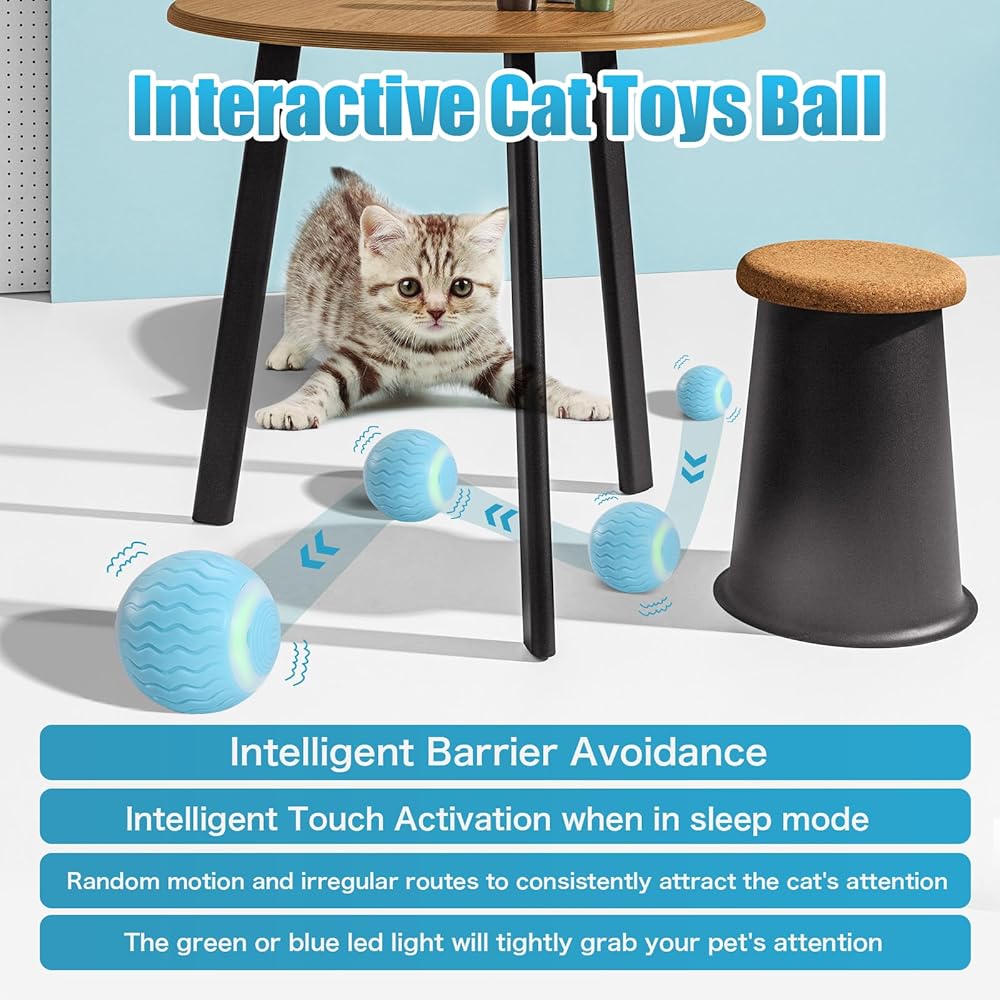 كرات لعبة القطط التفاعلية من ICYAIR، لعبة القطط المتحركة الذكية الأوتوماتيكية للعب الذاتي للقطط الداخلية، كرة دوارة قابلة لإعادة الشحن مع ضوء LED للقطط الصغيرة لممارسة المطاردة (أزرق)