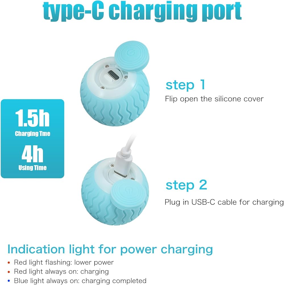 لعبة كرة الطاقة للقطط القابلة لإعادة الشحن: تأتي لعبة القط المتحركة مع كابل شحن USB-C مناسب. يمكن أن تعمل كرة الطاقة لمدة 4 ساعات في الوضع العادي وتستغرق ساعة واحدة فقط لإعادة الشحن. سوف تنام لعبة القط تلقائيًا بعد 4 دقائق من الحركة.