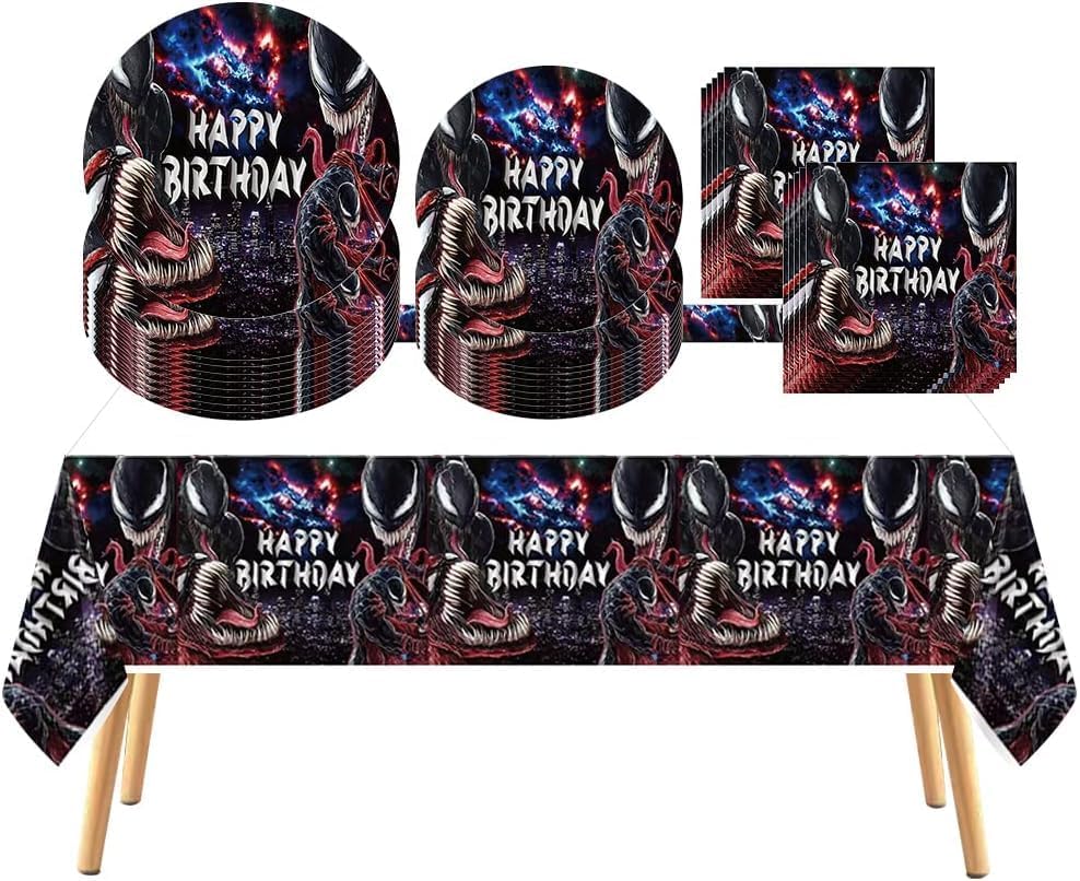 41 pcs venom Themed Party Supplies, 20 Plates, 20 Napkins and 1 Tablecloth, bunny rapper heart Birthday Party Decorations for Boys and Girls