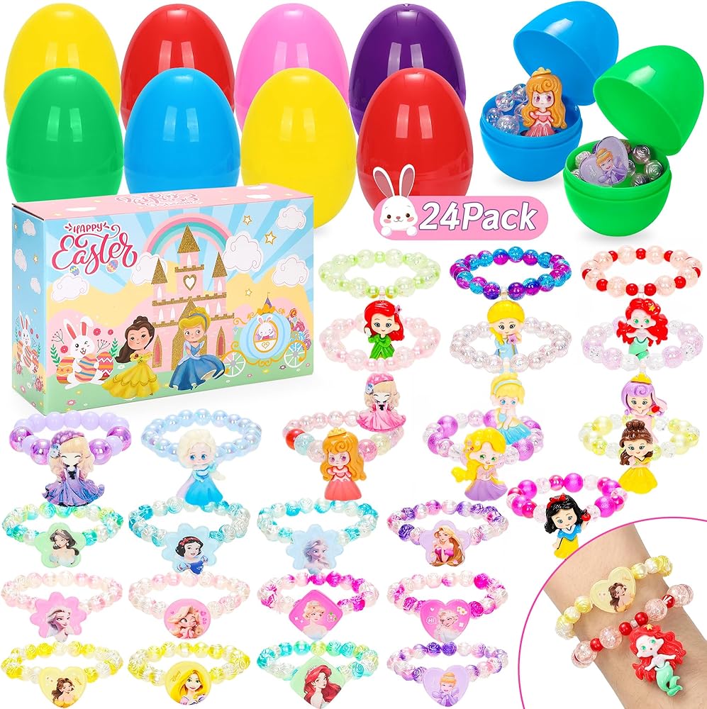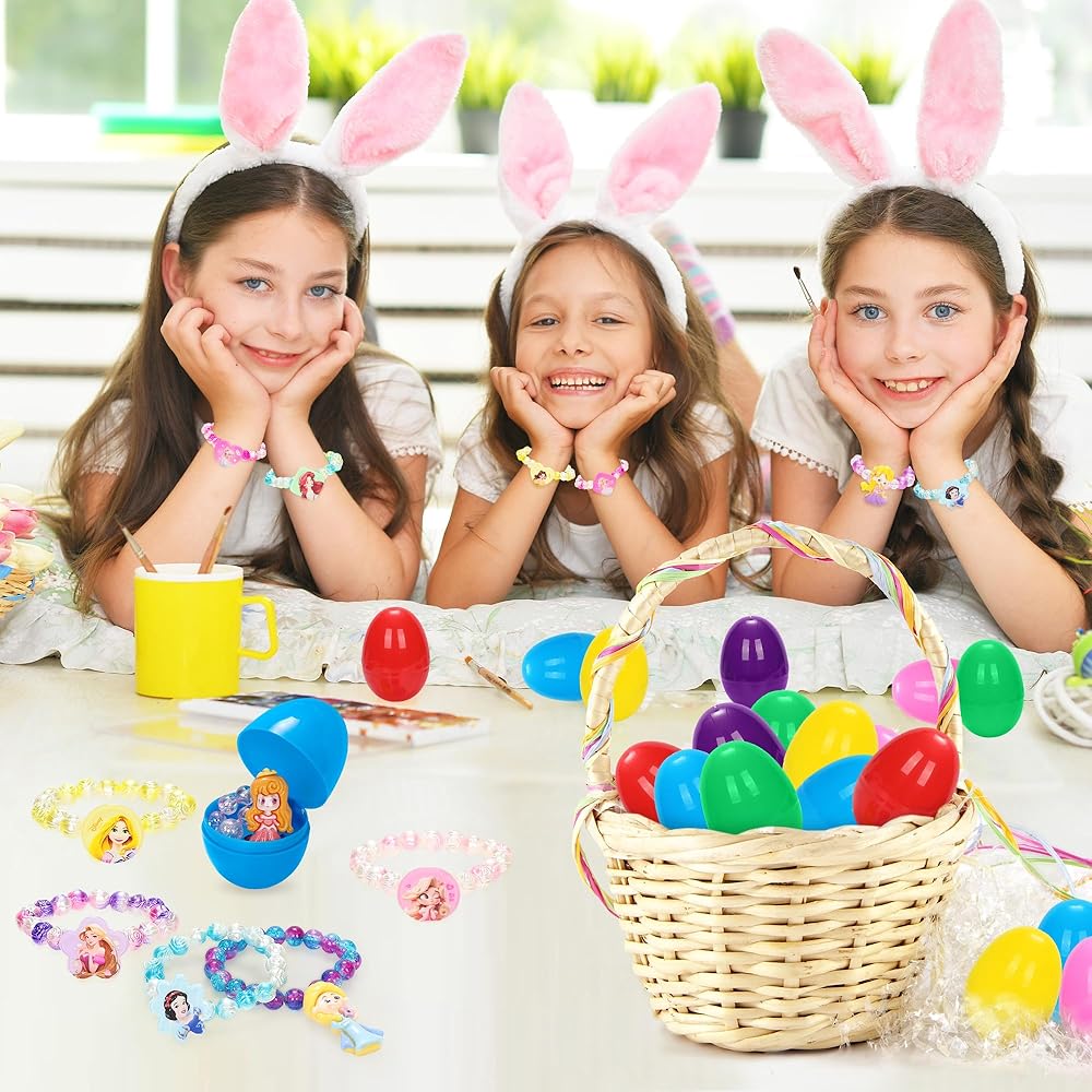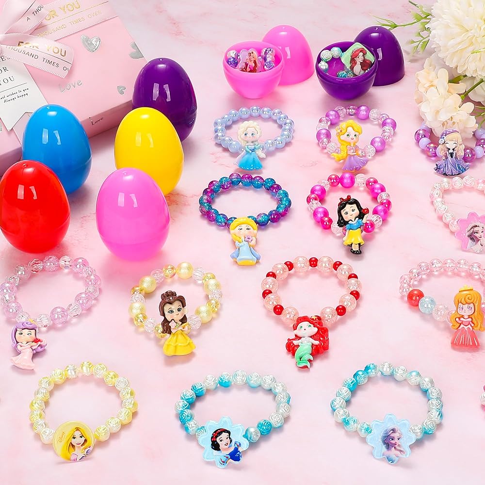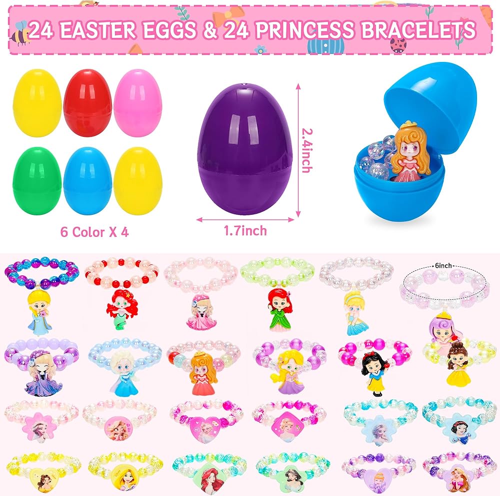 👑【Surprise-Filled Easter Joy】Enjoy 24 colorful Easter eggs pre-filled with beautiful Princess bracelets, providing children with a delightful and surprising Easter experience.