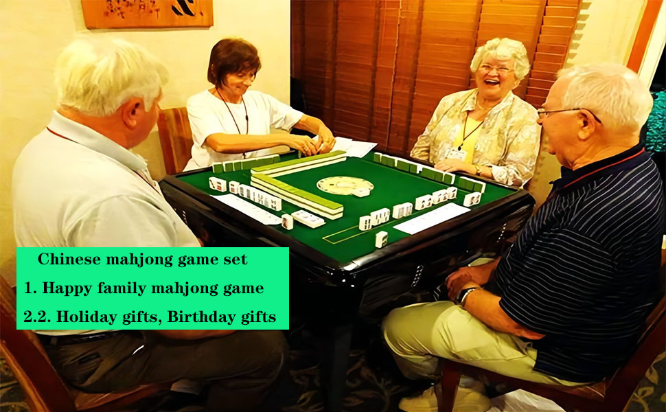 المجموعة: تتكون من 144 بلاطة ماجونج، بما في ذلك 36 دائرة، و36 خيزران، و36 شخصية، و12 تنينًا، و16 رياحًا، و8 زهور ومواسم (بما في ذلك دليل اللعبة)