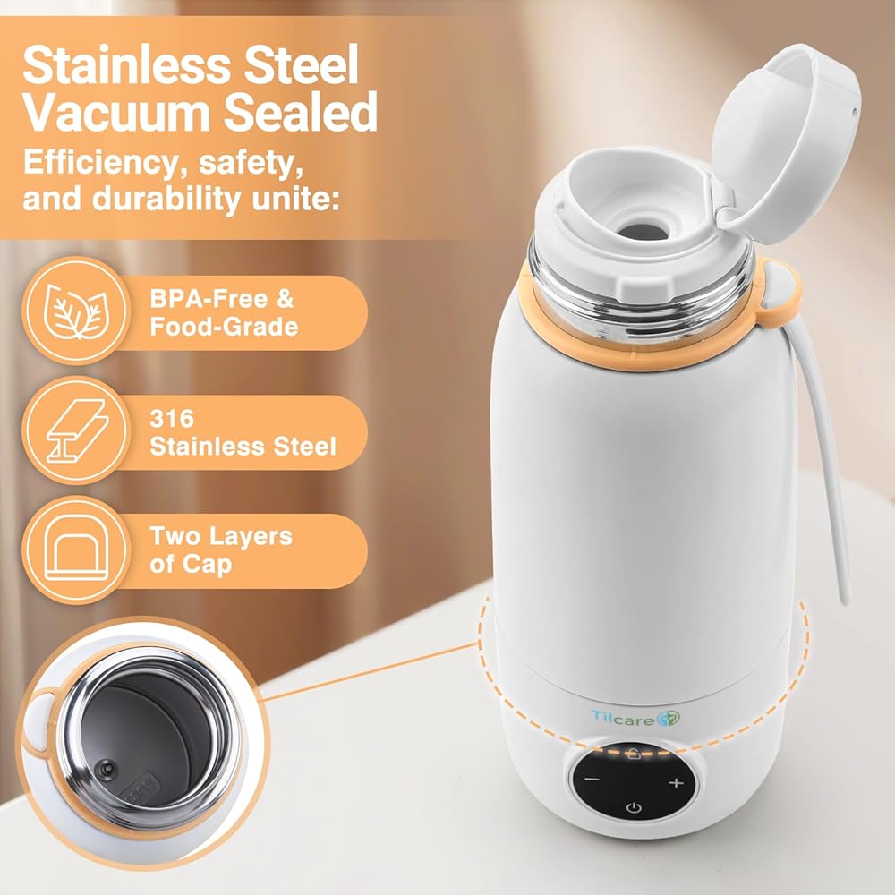 • سهلة التنظيف، صحية دائمًا: مصنوعة بتصميم خالٍ من مادة BPA وغطاء داخلي من الفولاذ المقاوم للصدأ 316، زجاجة المياه الدافئة الخاصة بنا سهلة التنظيف. يحافظ سخان المياه المخصص للسفر لدينا على أعلى معايير النظافة لمنع ارتفاع درجة الحرارة الذي يمكن أن يدمر العناصر الغذائية والبروتينات المهمة الموجودة في الحليب والحليب الصناعي. جهاز تدفئة حليب السفر الخاص بنا يهتم بطفلك بقدر ما تهتم به أنت. يضمن سخان الماء الصناعي عملية تسخين خالية من البكتيريا، مع الحفاظ على معايير النظافة التي لا تشوبها شائبة.