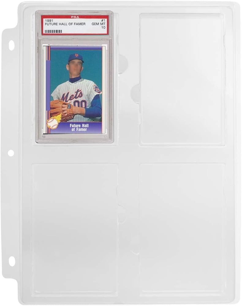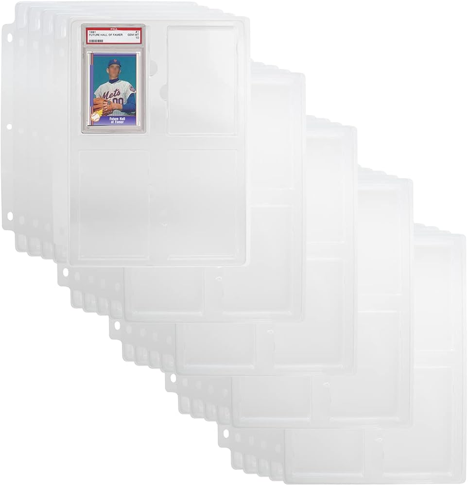 تخزين وعرض البطاقات القابلة للتحصيل: يحمل بطاقات تحصيل متدرجة PSA وبطاقات رياضية متدرجة ذات حجم مماثل. تعتبر هذه الملاءات المثقوبة ذات الثلاث فتحات رائعة لعرض مجموعة البطاقات القابلة للجمع الخاصة بك داخل أي غلاف ثلاثي الحلقات؛ تحتوي صفحات غلاف البطاقات الرياضية على 4 جيوب لكل ورقة ليصبح المجموع 4 جيوب لكل صفحة للبطاقات المصنفة؛ رائعة لحماية بطاقات البيسبول، وبطاقات كرة القدم، والمزيد.