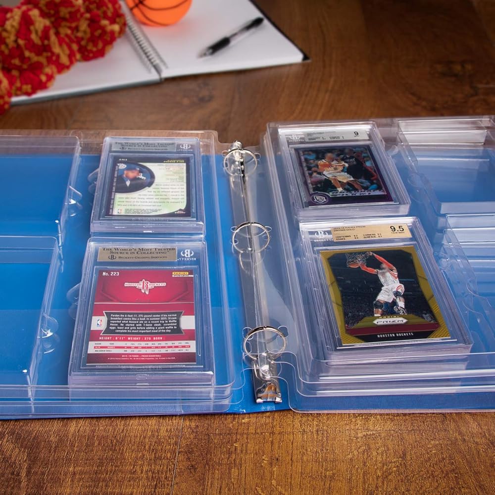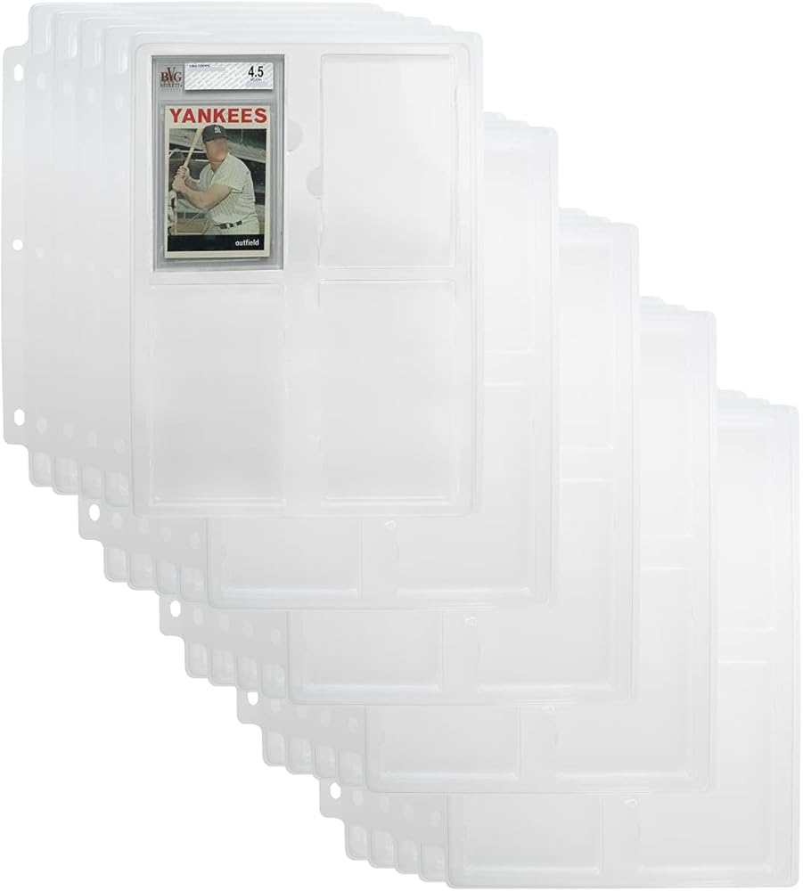COLLECTIBLE CARD STORAGE & DISPLAY: Holds Beckett graded collectible cards & similar size graded sports cards. These 3 hole punched sheets are great for displaying your collectible card set within any 3 ring binder; Sport card binder pages have 4 pockets per sheet for a total of 4 pockets per page for graded cards; Great for baseball card protectors, football cards, and more.