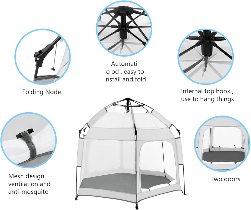 ❤ تصميم احترافي - تسمح الجدران الجانبية الشبكية بمرور النسيم وتمنح الأم رؤية كاملة لما يحدث في الداخل. يمكن إغلاق باب الشاشة بالكامل، وإبعاد البعوض والرمل