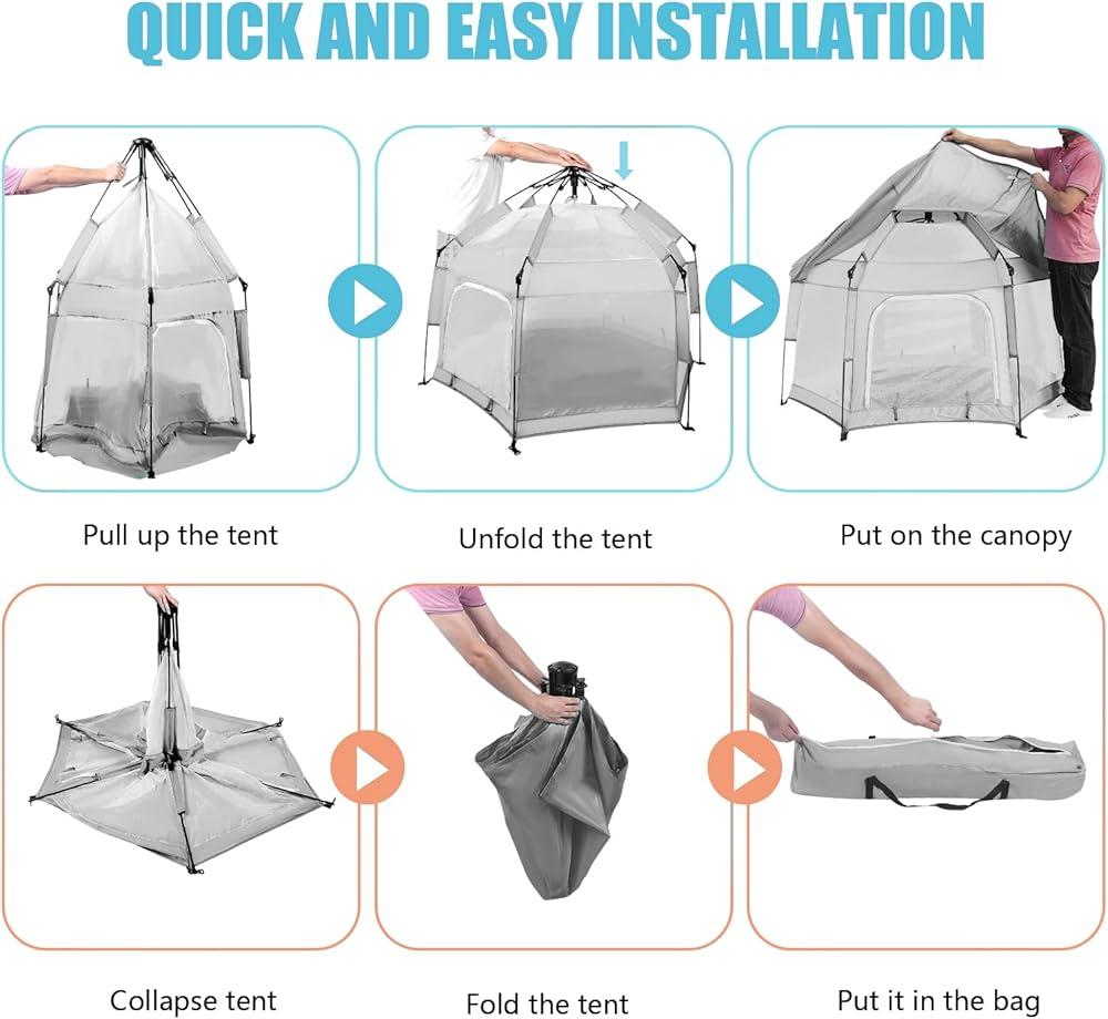 ❤ إعداد سريع - قلم لعب فوري تلقائي، يمكنك إعداده أو طيه في ثوانٍ. تأتي مع ستة أوتاد لإبقاء سياج اللعب ثابتًا بشكل آمن على الأرض/الرمل
