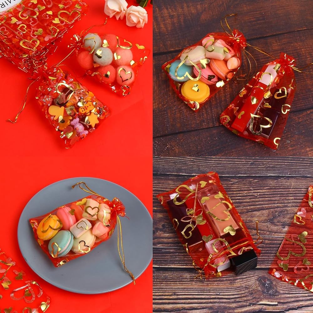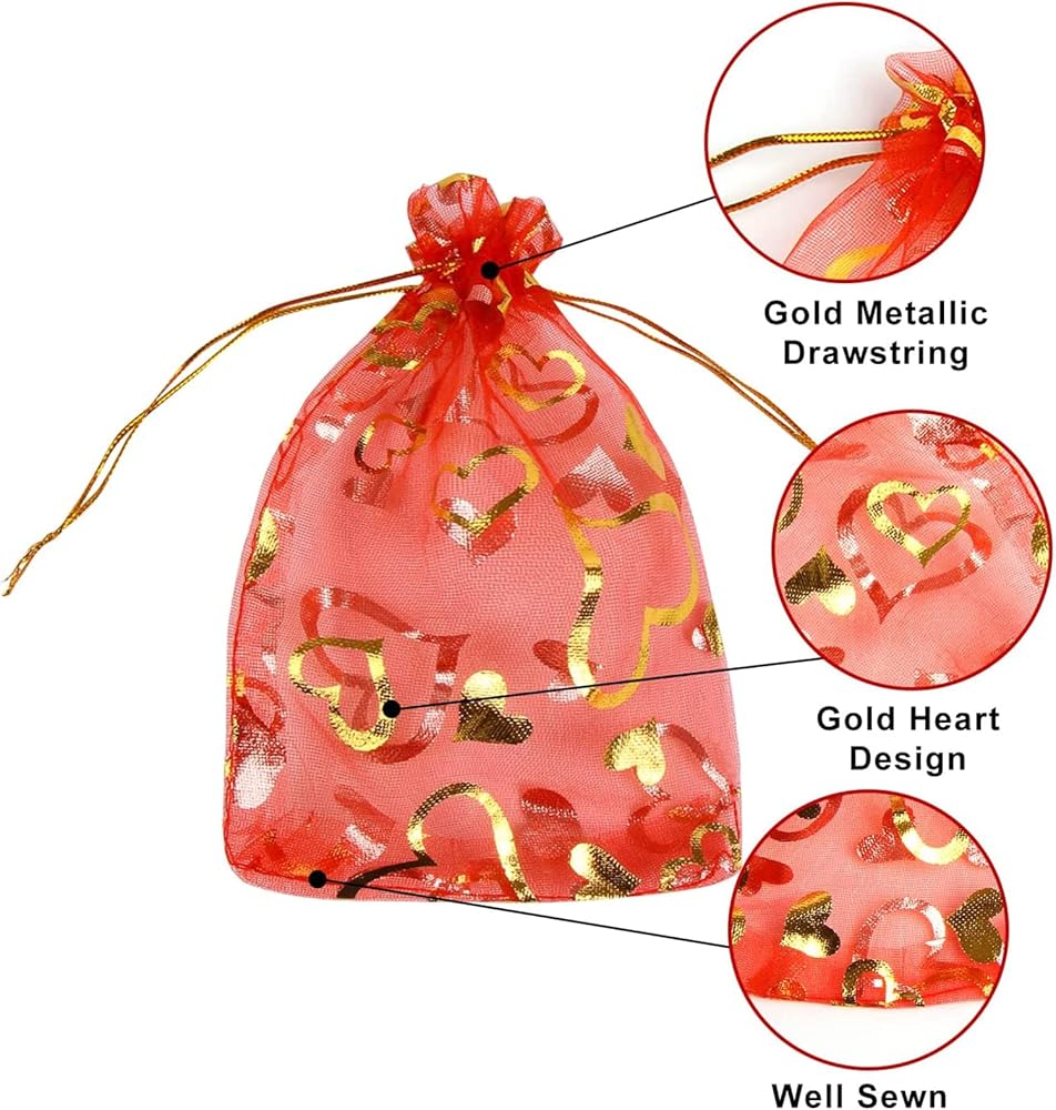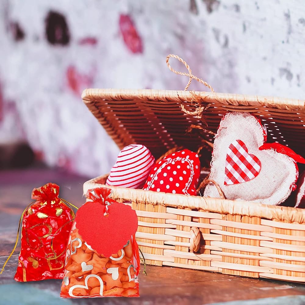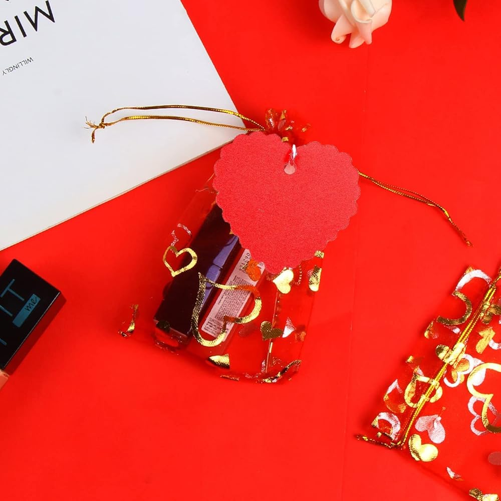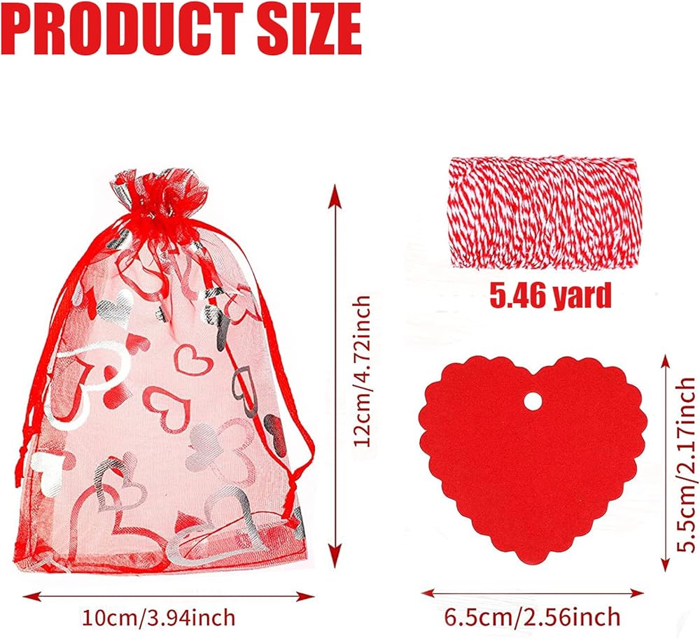These organza present bags, paper tags and rope are all characterized by romantic Valentine elements, such as heart pattern, red and white color, which will create romantic and elegant touch to your party or celebration, leaving a deep impression on you and all of the guests.