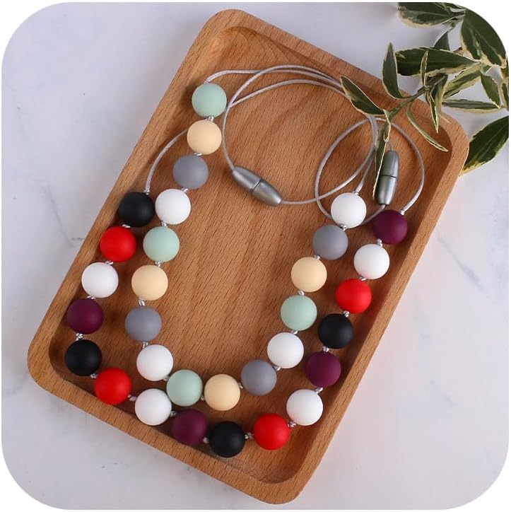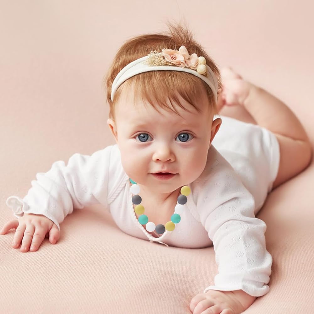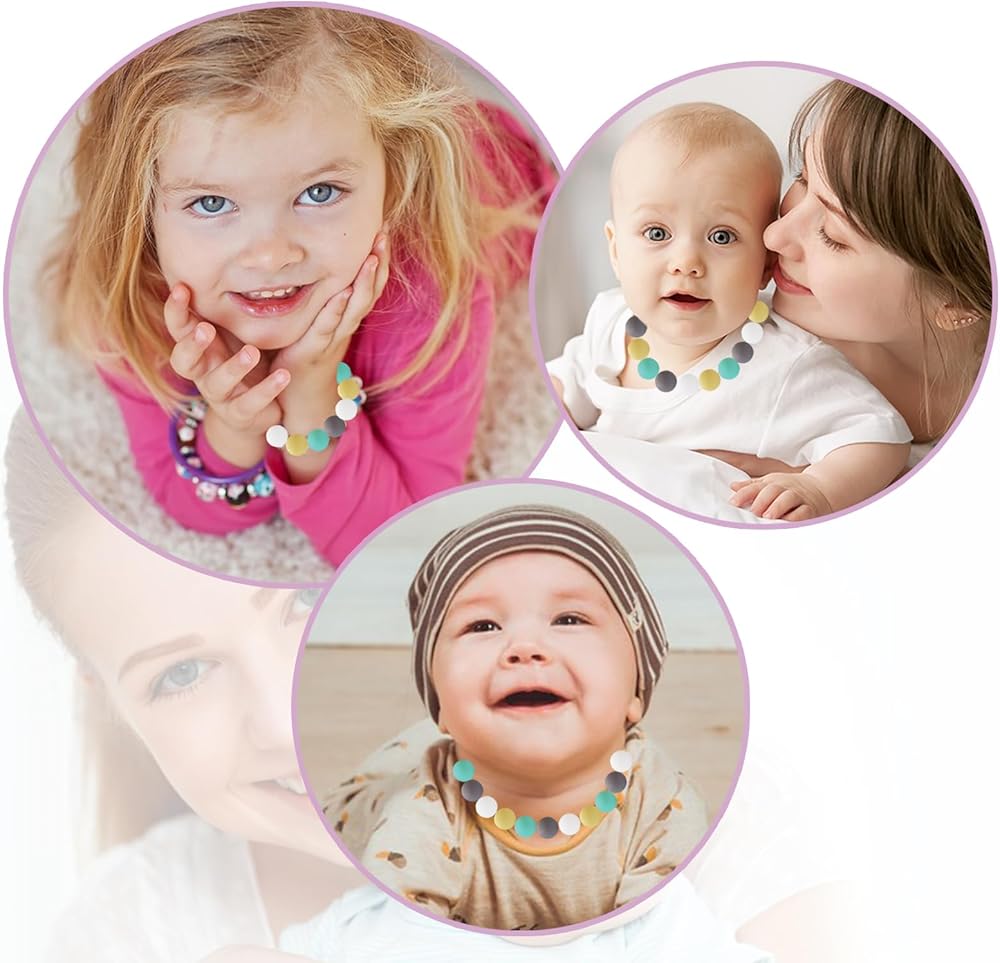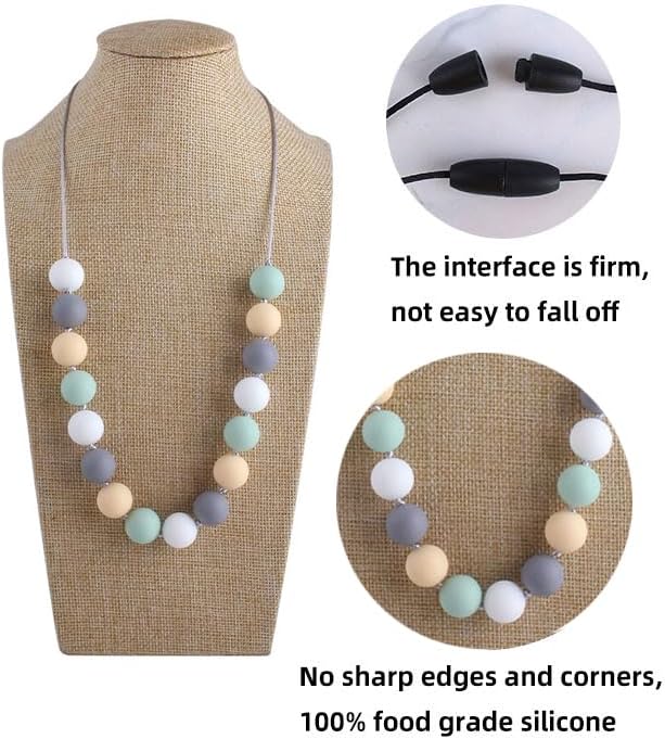 آمنة للاستخدام: تستخدم قلائد التسنين الخاصة بنا سلكًا ناعمًا وقويًا من النايلون لا ينكسر بسهولة، ويمنع خطر الاختناق. سلك ناعم حريري لن يسحب شعرك.