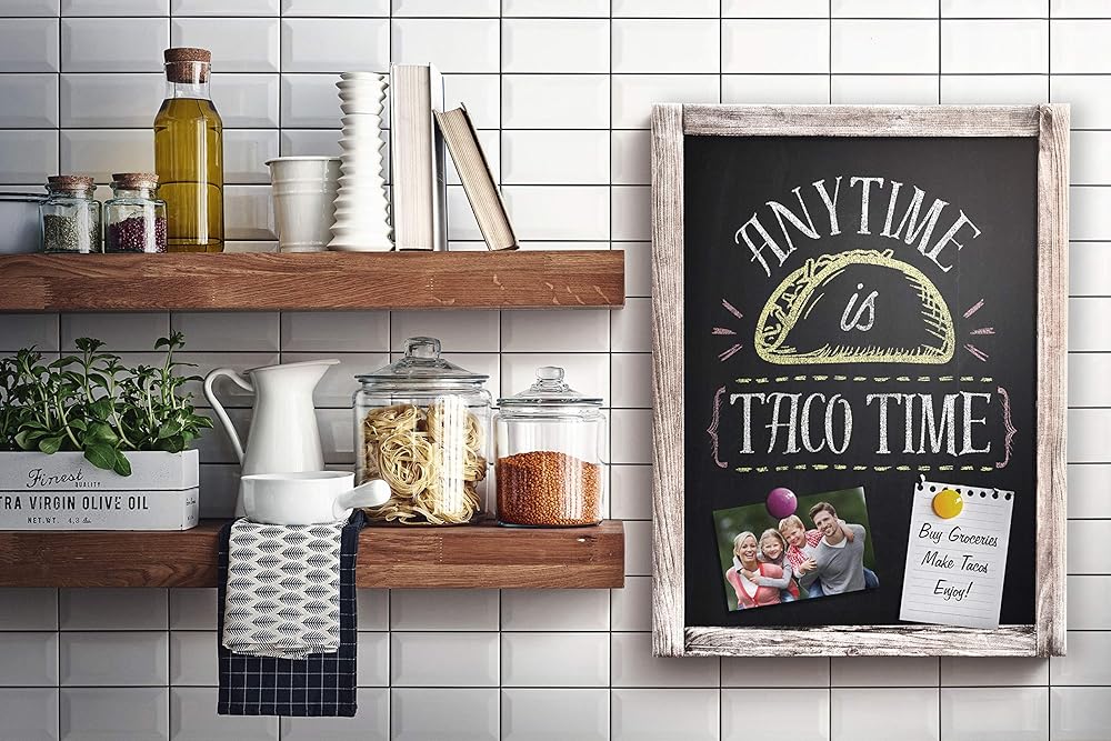 • متعددة الأغراض - تم تصميم السبورة المؤطرة الخاصة بنا لاستخدامها في المطبخ، والمطاعم، والحانات، والمنزل، وحفلات الزفاف، وما إلى ذلك. ويمكن استخدامها أيضًا كلوحة إعلانات مغناطيسية. يكمل الديكور المثالي الخاص بك. علامة لوحة الطباشير. لائحة الطعام. علامة شريط. زخرفة الحدث. سبورة المطبخ.