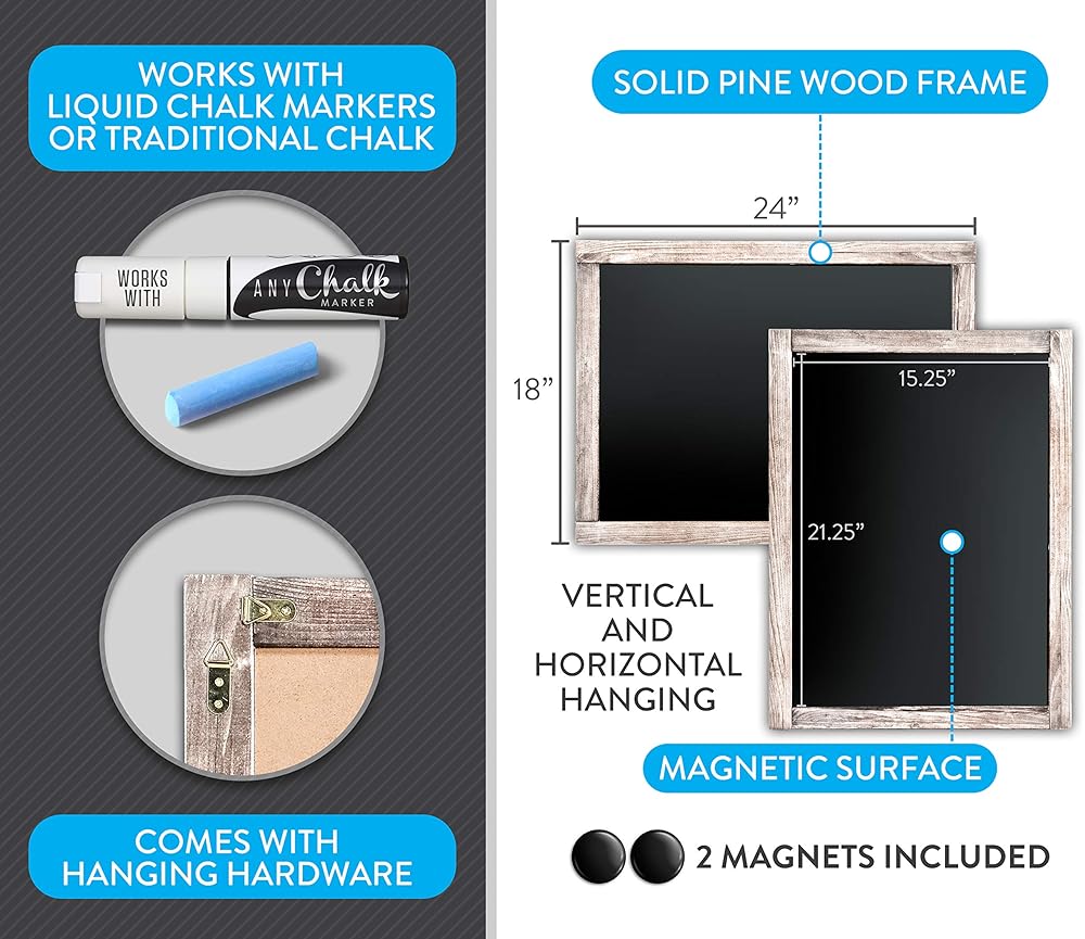 • تصميم جميل - سبورة طباشير مغناطيسية بيضاء للحائط مصنوعة يدويًا من خشب الصنوبر الصلب. سطح كتابة مقاس 15.25 × 21.25 بوصة. علامة ريفية لديكورك المثالي. تم تصميم اللوحة المغناطيسية المؤطرة الخاصة بنا للتعليق عموديًا وأفقيًا. يمكن استخدامها أيضًا كعلامة خشبية.