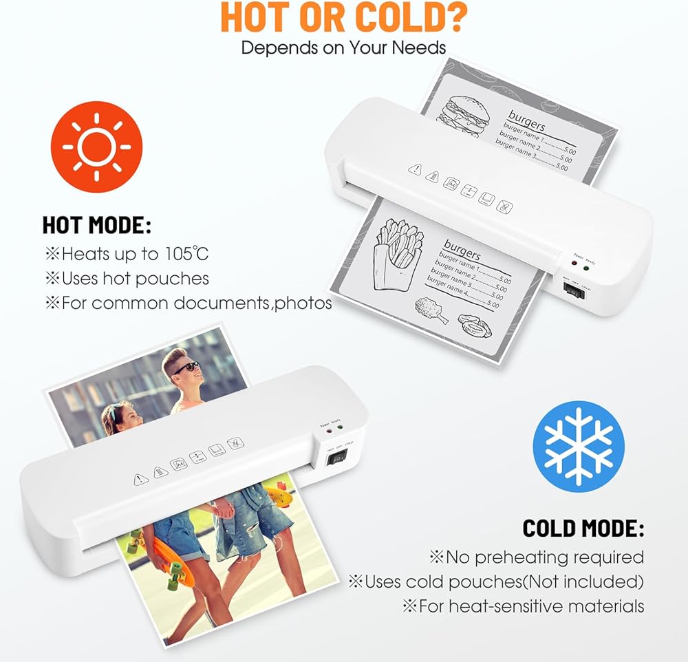 • ★【 آلة تغليف باردة وساخنة ذات وضعين】تحتوي آلة التغليف الحرارية A4 على وضعي تغليف بارد وساخن لمجموعة واسعة من المستندات. يتيح لك وضع التصفيح البارد التصفيح على الفور دون تسخين مسبق، بينما يتطلب الوضع الساخن 3-5 دقائق من التسخين المسبق. بعد التصفيح، يمكن ترك ورق المكتب لفترة طويلة، وليس من السهل أن يتلف، ومضاد للخدش، ومضاد للخدش. قذرة ومقاومة للماء.