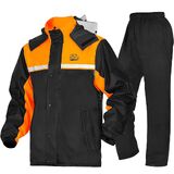 【مصمم جيدًا】يحتوي معطف المطر على جيبين جانبيين كبيرين مع أغطية مطر لسهولة الملاءمة والحماية من المطر، ويمنع الماء بشكل فعال. تتميز بدلة المطر هذه بتصميم فيلكرو على الأساور والكاحلين لجعلها مناسبة بشكل أفضل للمعصمين والكاحلين، كما يسمح أيضًا بارتداء سراويل المطر في أحذية المطر.