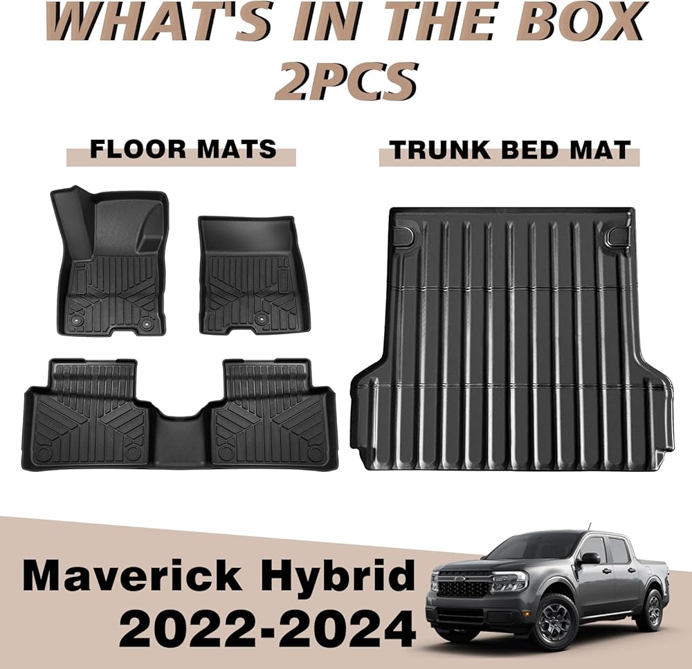 Muslogy for Maverick Truck Bed Mat All Weather Bed Liner TPE Material Trunk Liner Compatible with Ford Maverick 2022 2023 2024 XL XLT Lariat And Hybrid