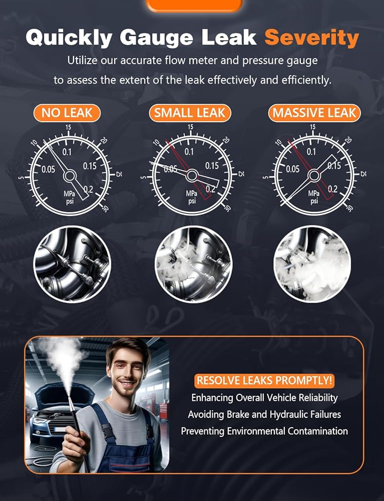 💰[مقياس ضغط دقيق] يتيح لك Powerscale M2 المجهز بمقياس ضغط مراقبة تغيرات الضغط وتحديد موقع التسربات البسيطة بسهولة. مع مضخة هواء مدمجة ومولد دخان، فهو خيار مثالي لصيانة المركبات دون الاعتماد على مضخات هواء إضافية.