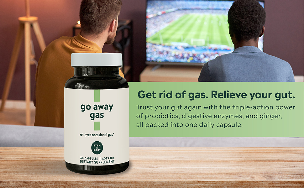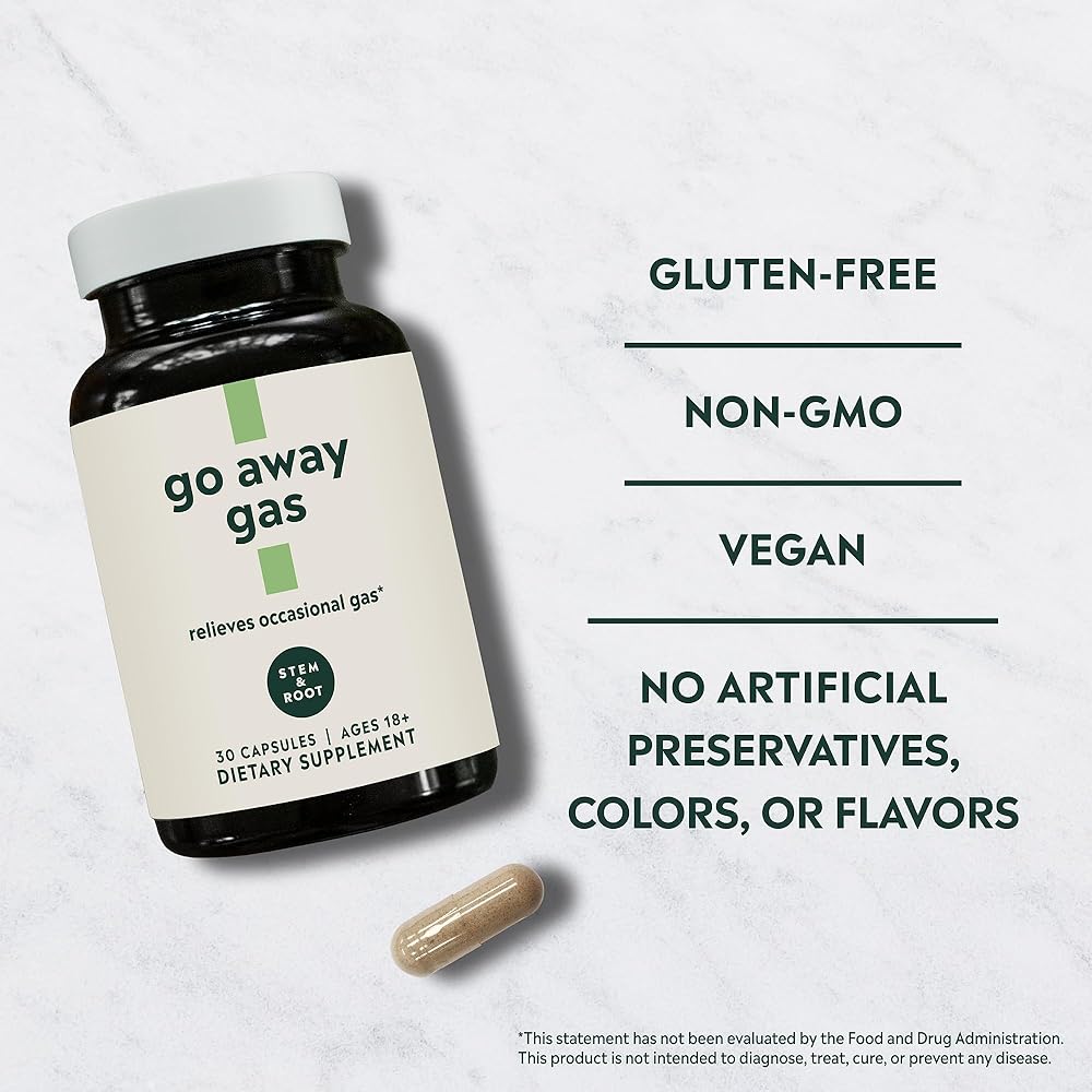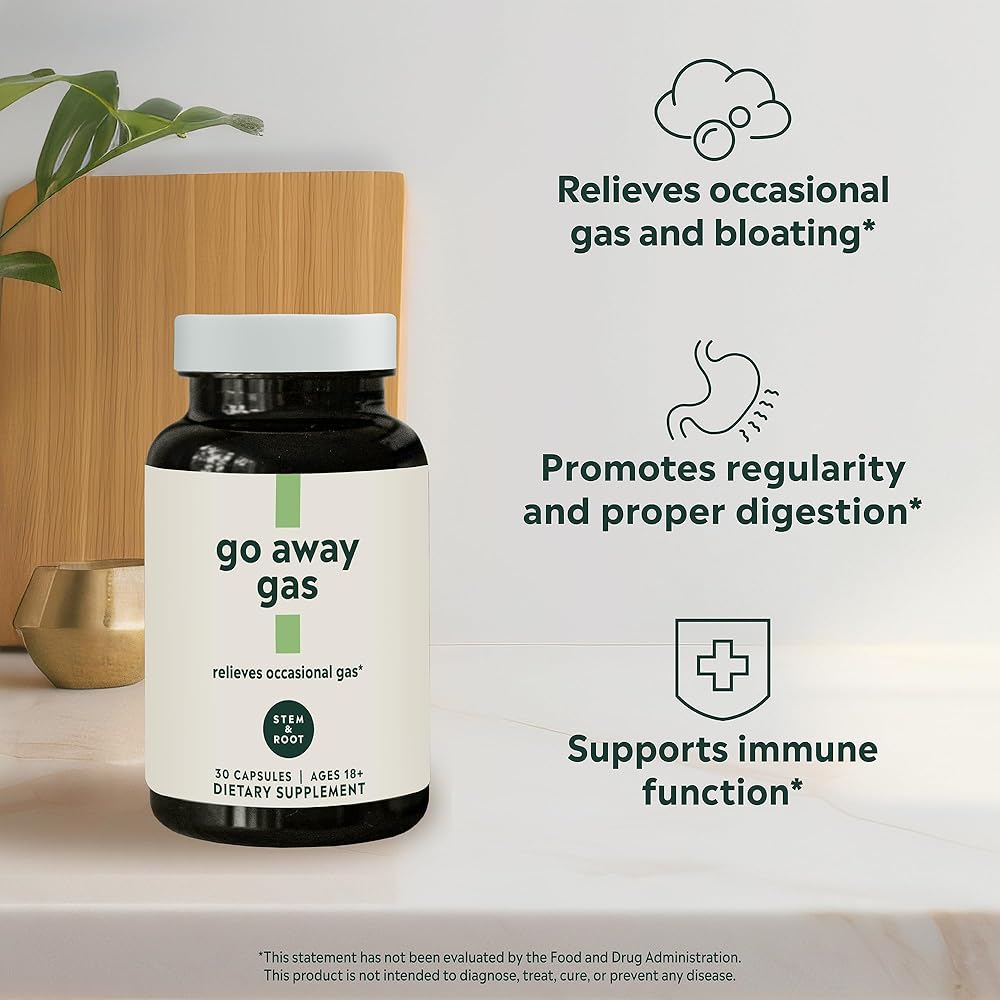 تخفيف الهضم ثلاثي المفعول: مع Go Away Gas، قمنا بصناعة حل متكامل لتخفيف اضطرابات المعدة والغازات. تجمع تركيبتنا بين العمل الثلاثي للبروبيوتيك والإنزيمات الهاضمة والمكونات الطبيعية مثل سترات المغنيسيوم وجذور الزنجبيل لتمنحك راحة هضمية كاملة بطريقة قوية ولطيفة.