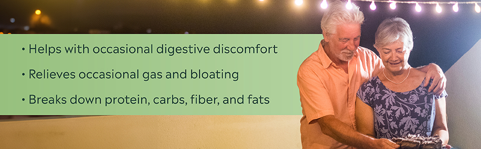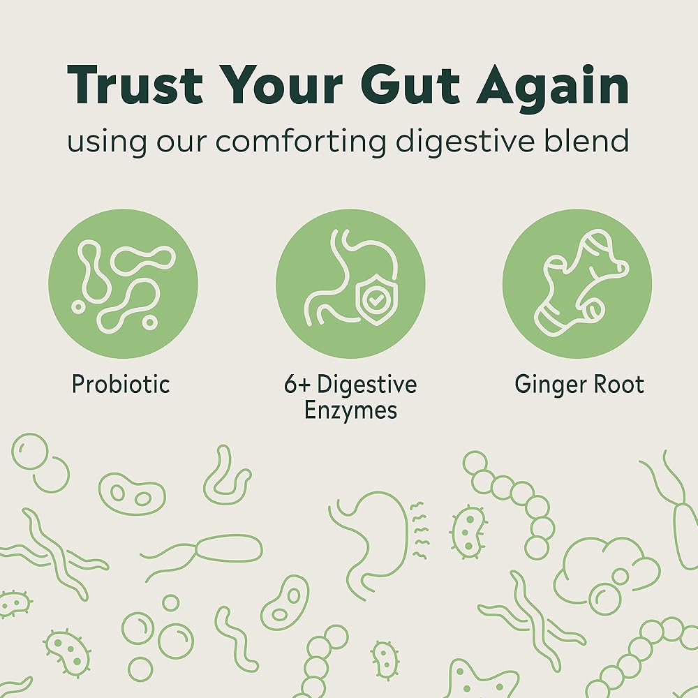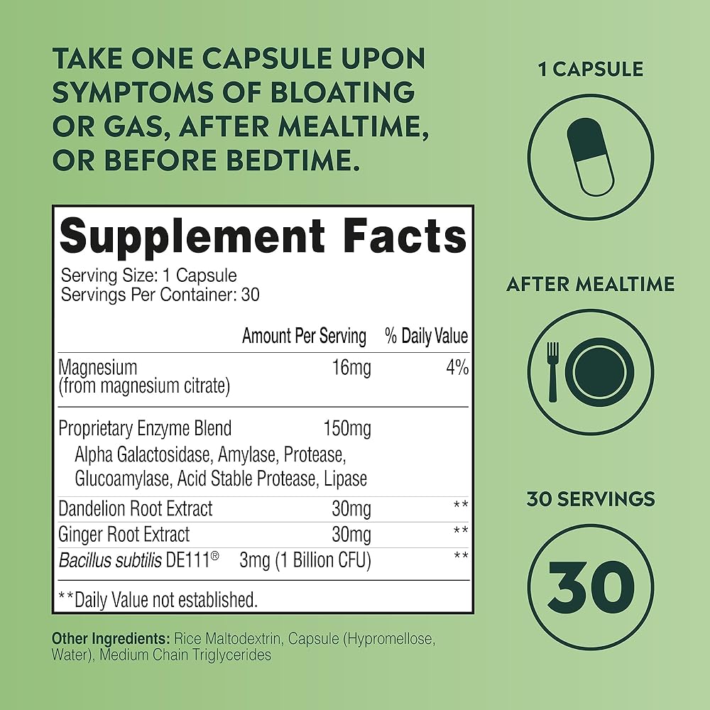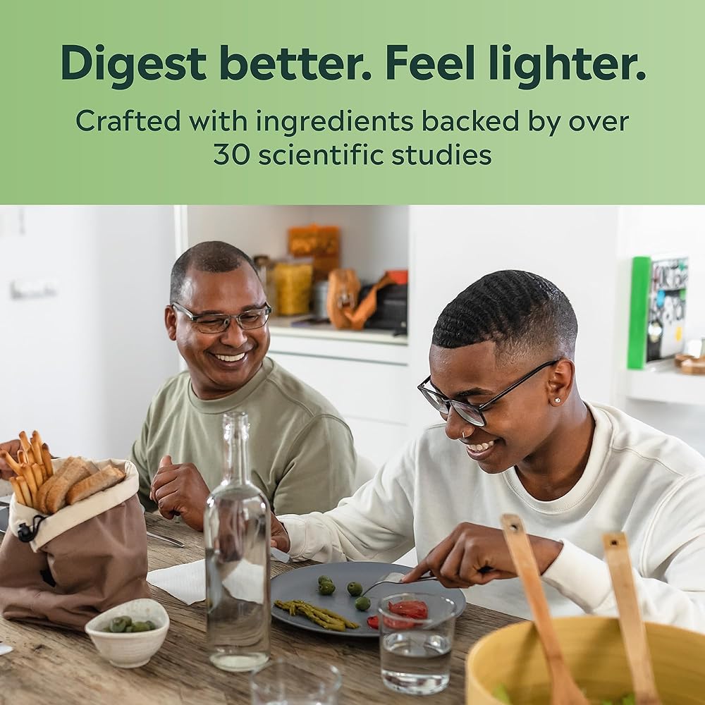 مزيج إنزيم هضمي لطيف: تحتوي مكملاتنا الهضمية على مزيج فريد من الإنزيمات الهضمية، بما في ذلك ألفا جالاكتوسيداز، والبروتياز، والجلوكواميلاز، والبروتياز المستقر الحمضي، والليباز، وإنزيم الأميليز. تعمل هذه الإنزيمات معًا لتكسير البروتينات والكربوهيدرات والألياف والدهون بلطف، مما يوفر غازًا مهدئًا وتخفيف الانتفاخ.