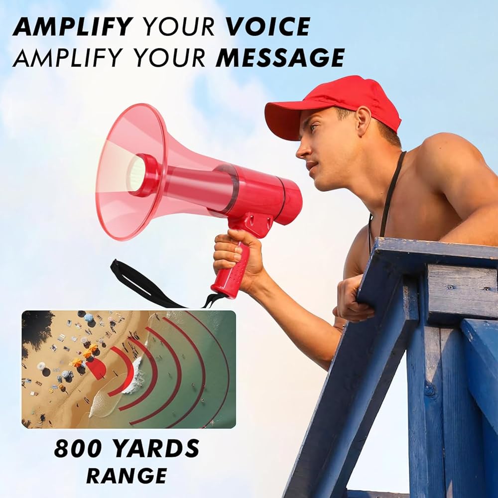 Technology Megaphone bullhorn 50W peak Voice Amplifier with Siren offers a range of approx. 800 yards.