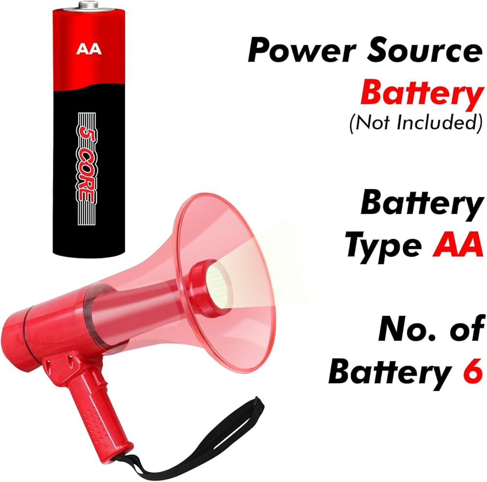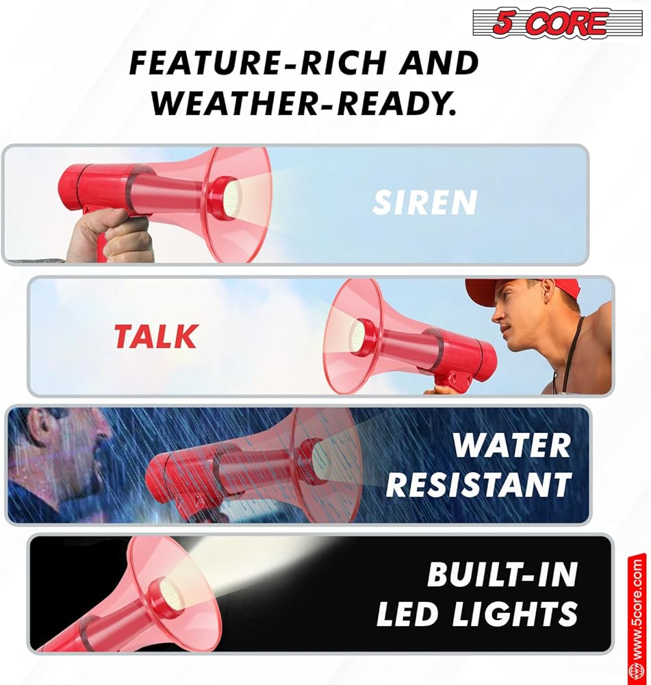 5 CORE 40W Waterproof Megaphone Bullhorn Flashlight PRO Fire Army Grade - Battery + LED Light + Adj Volume + Siren Handheld Lightweight for Water Sports Boat Speaker